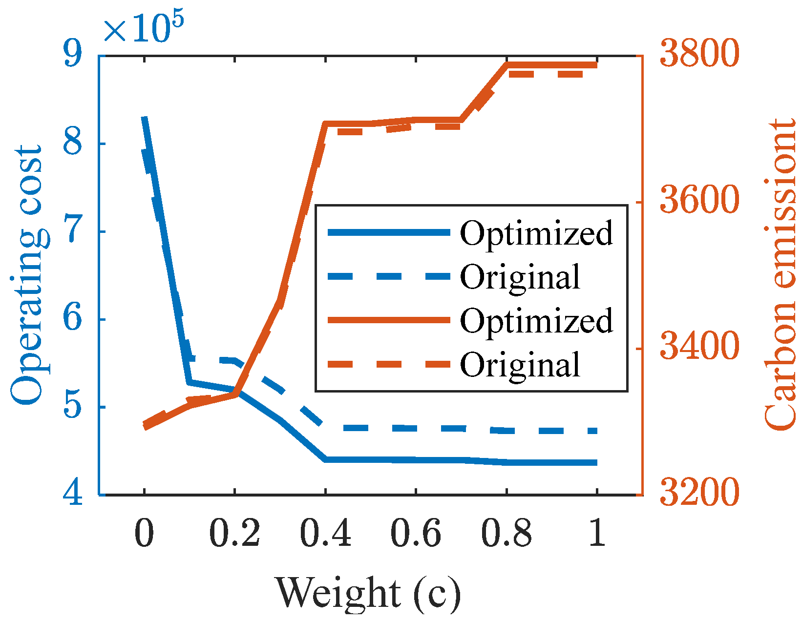 - The optimization method of the electrolytic aluminum load curve proposed can effectively reduce the operating costs of the system. The optimized electrolytic aluminum load can reduce the total operating cost by 7.62% at most, while the optimization result has little effect on carbon emissions.