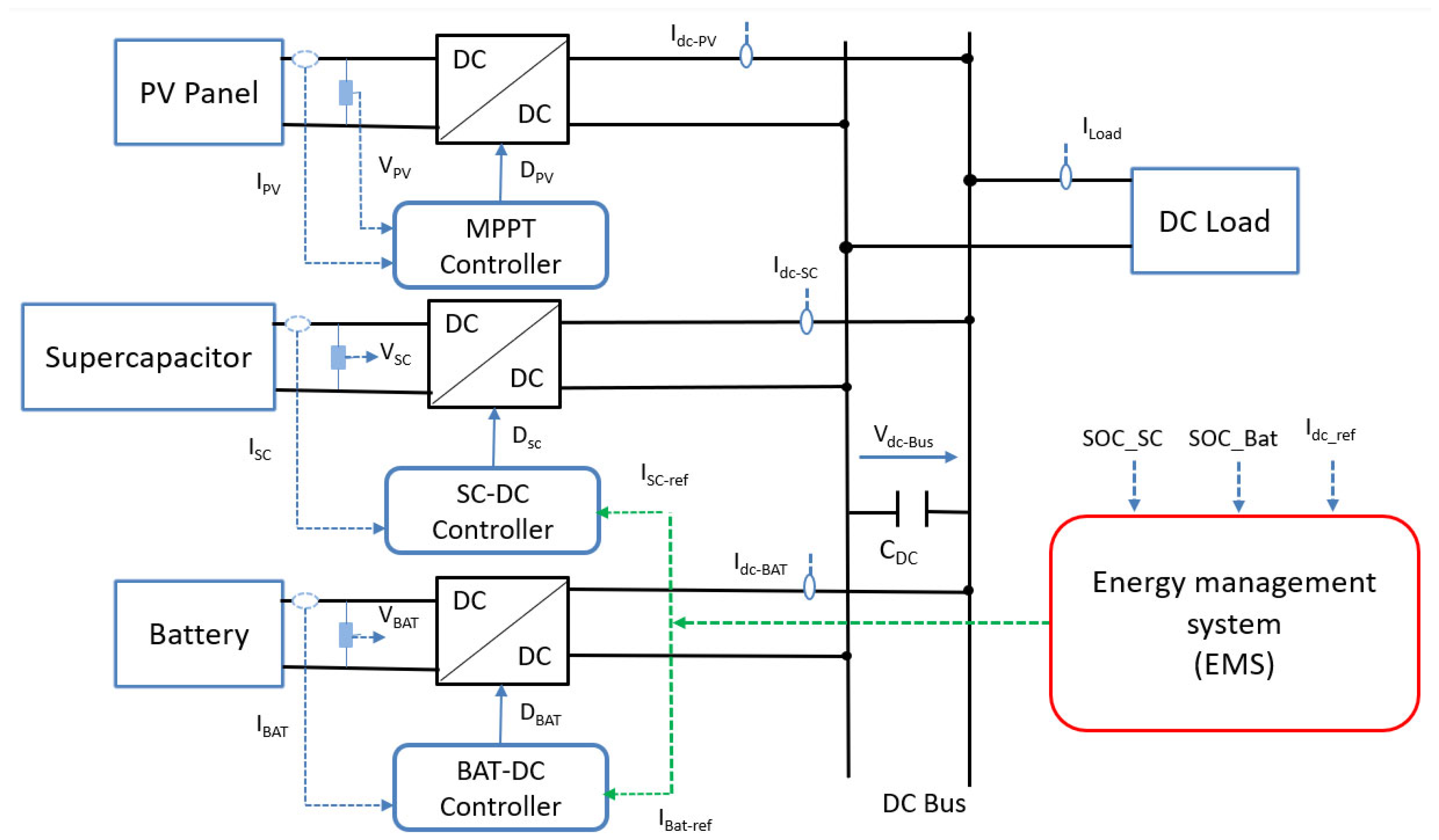 - Cabrane, Z.; Kim, J.; Yoo, K.; Ouassaid, M. HESS-Based Photovoltaic/Batteries/Supercapacitors: Energy Management Strategy and DC Bus Voltage Stabilization. Sol. Energy 2021, 216, 141–154. [Google Scholar] [CrossRef]