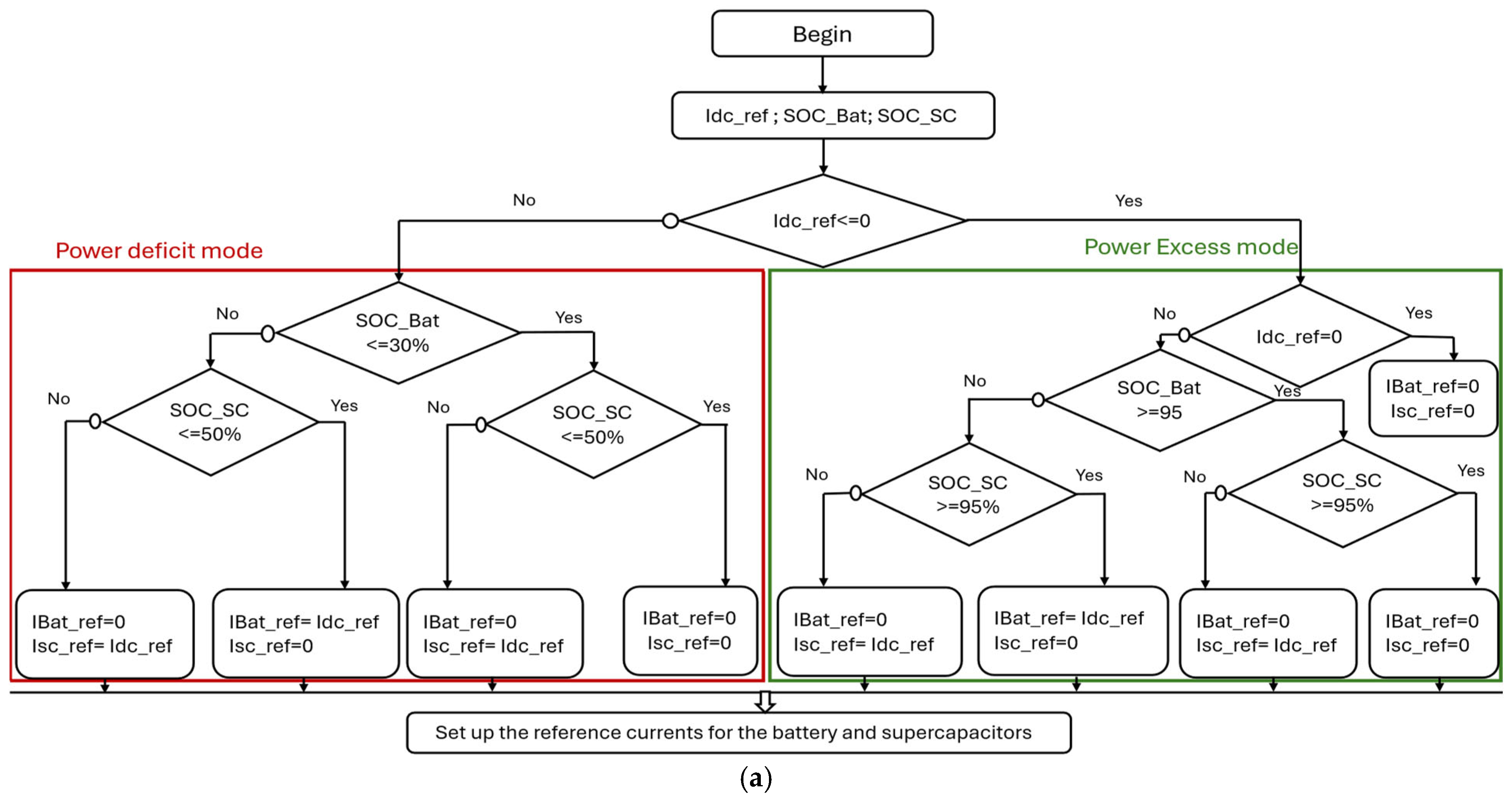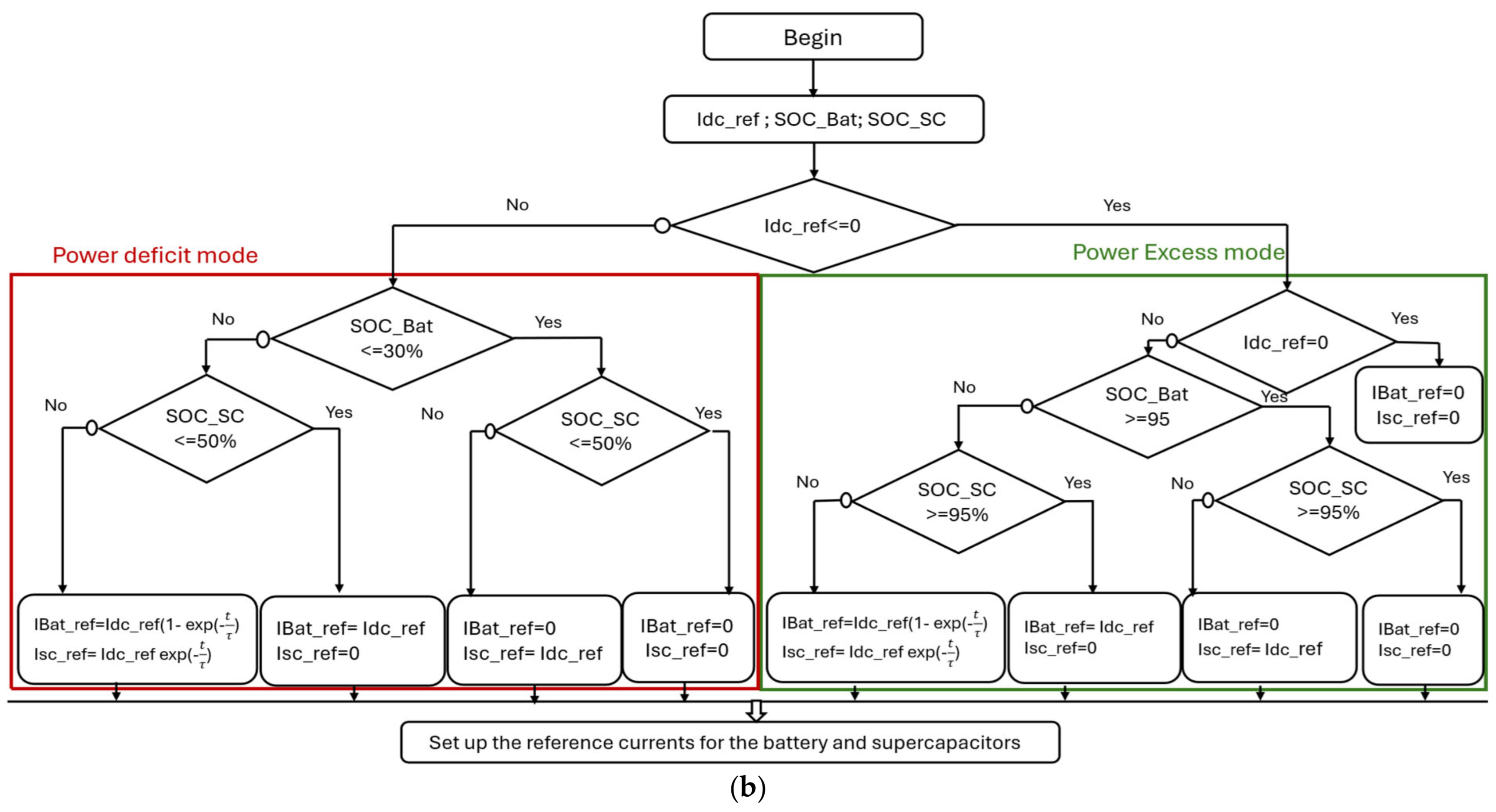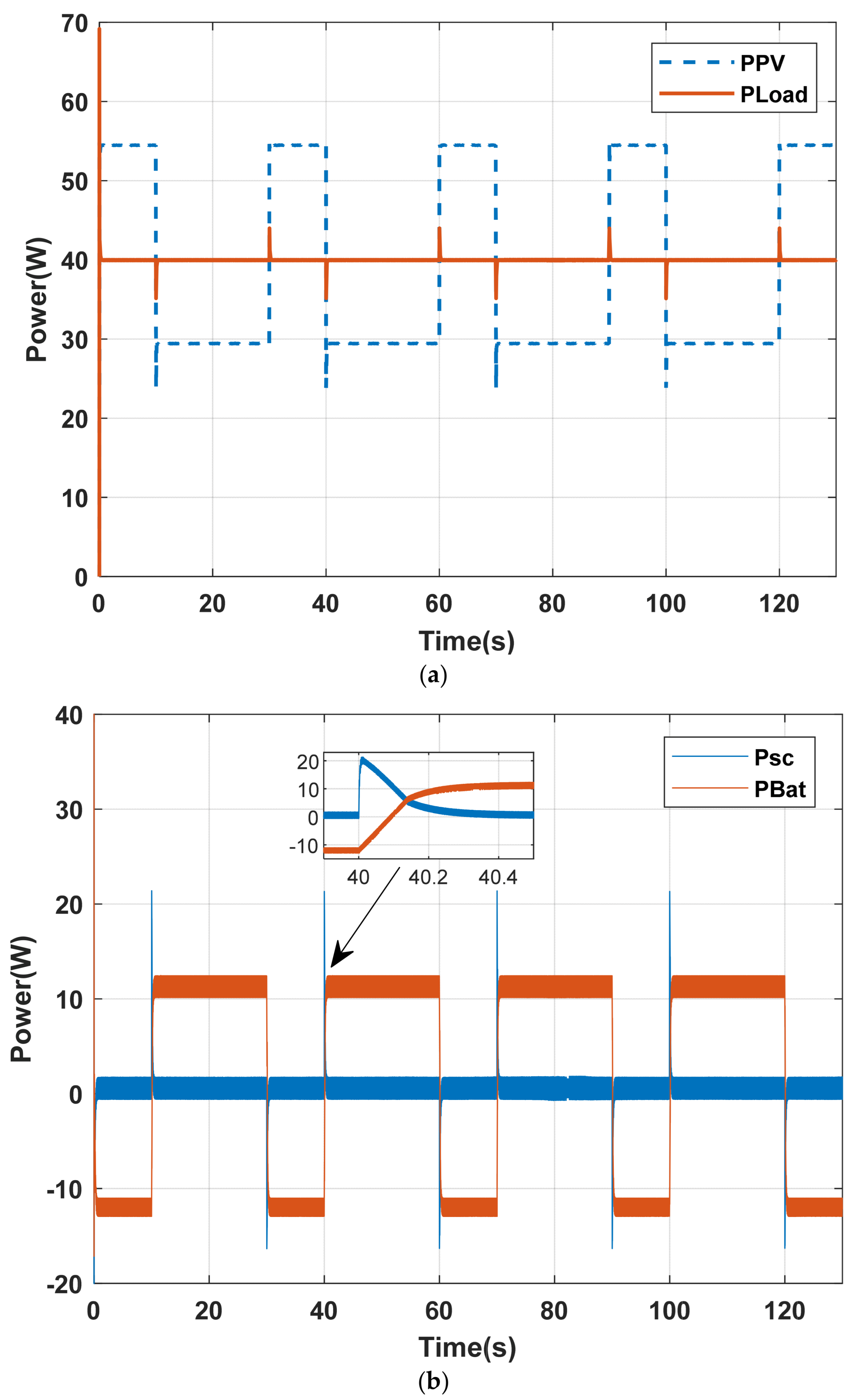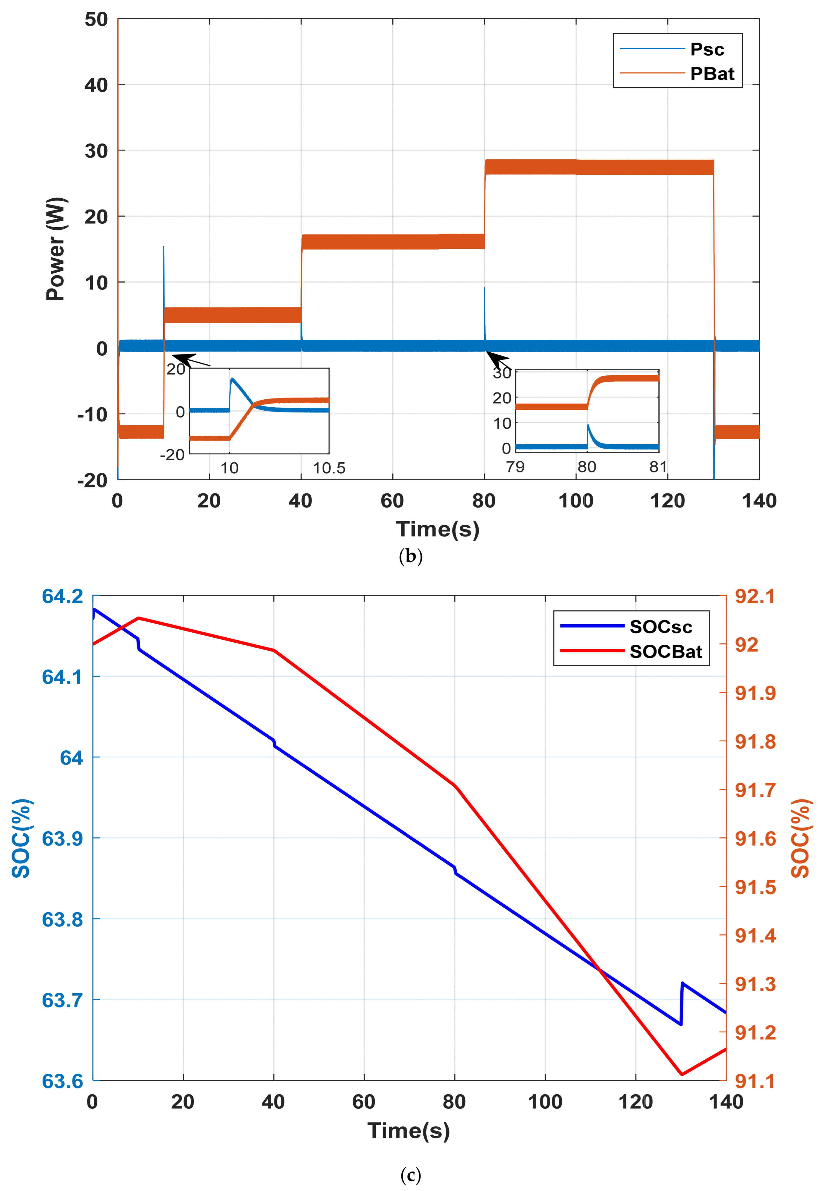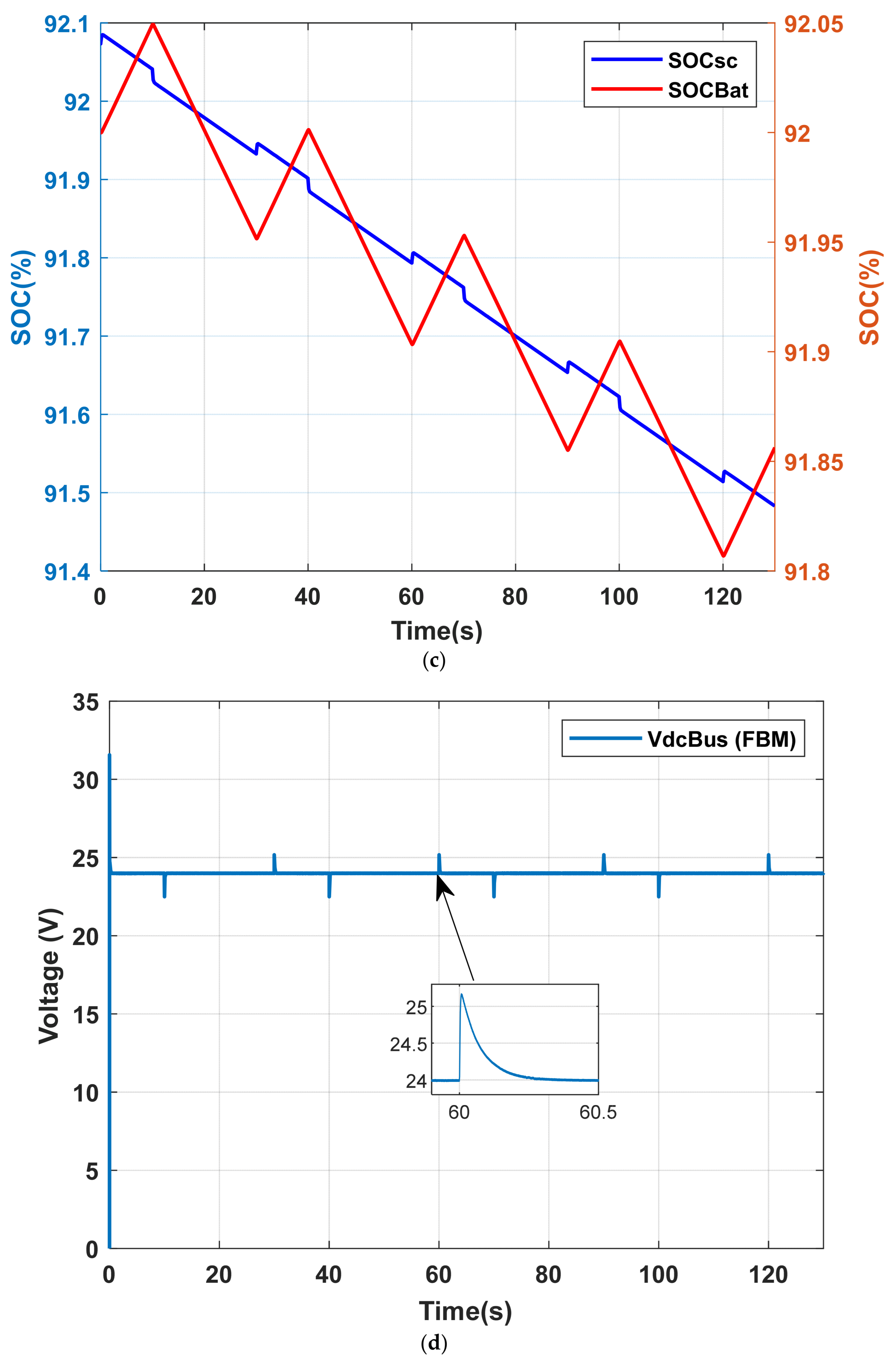 4.2. Case 2: The Battery and the Supercapacitor Are Under Nominal Load, but Only the Supercapacitor Is About to Reach Its Half-Charge State