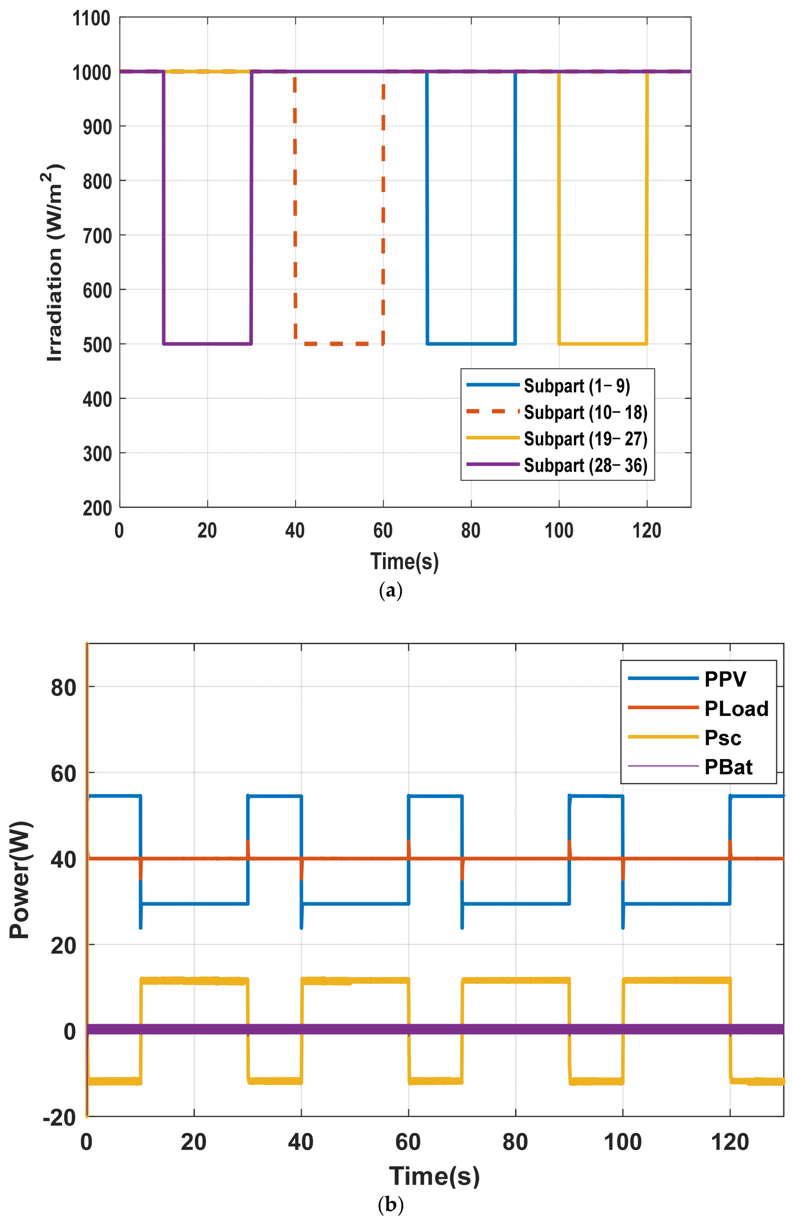 - Development of a PV/Battery/Supercapacitor hybrid system able to operate under partial shading conditions while maintaining a stable output power and voltage.