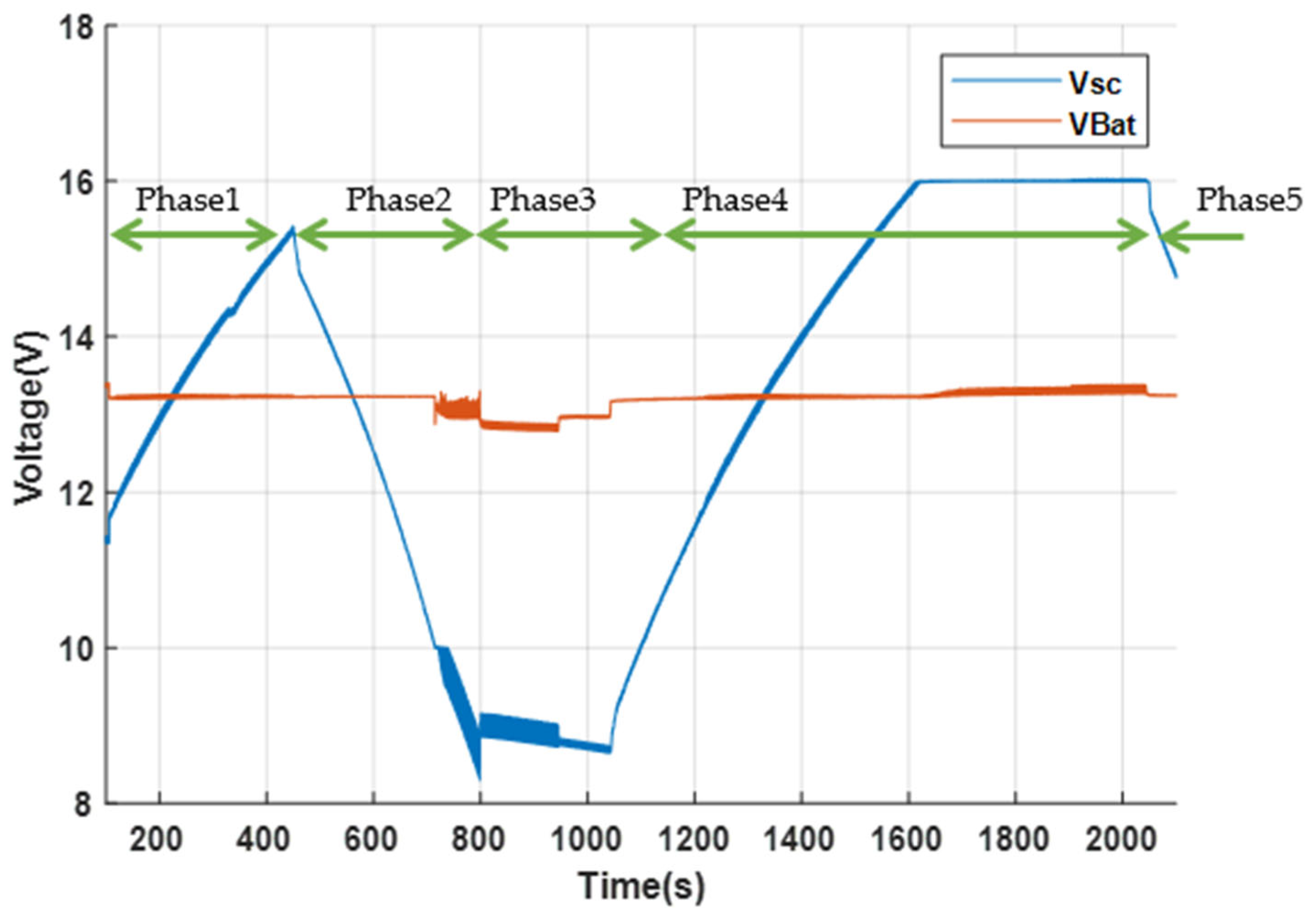 4.1. Case 1: The Supercapacitor and the Battery Are Initially Charged Under Nominal Load