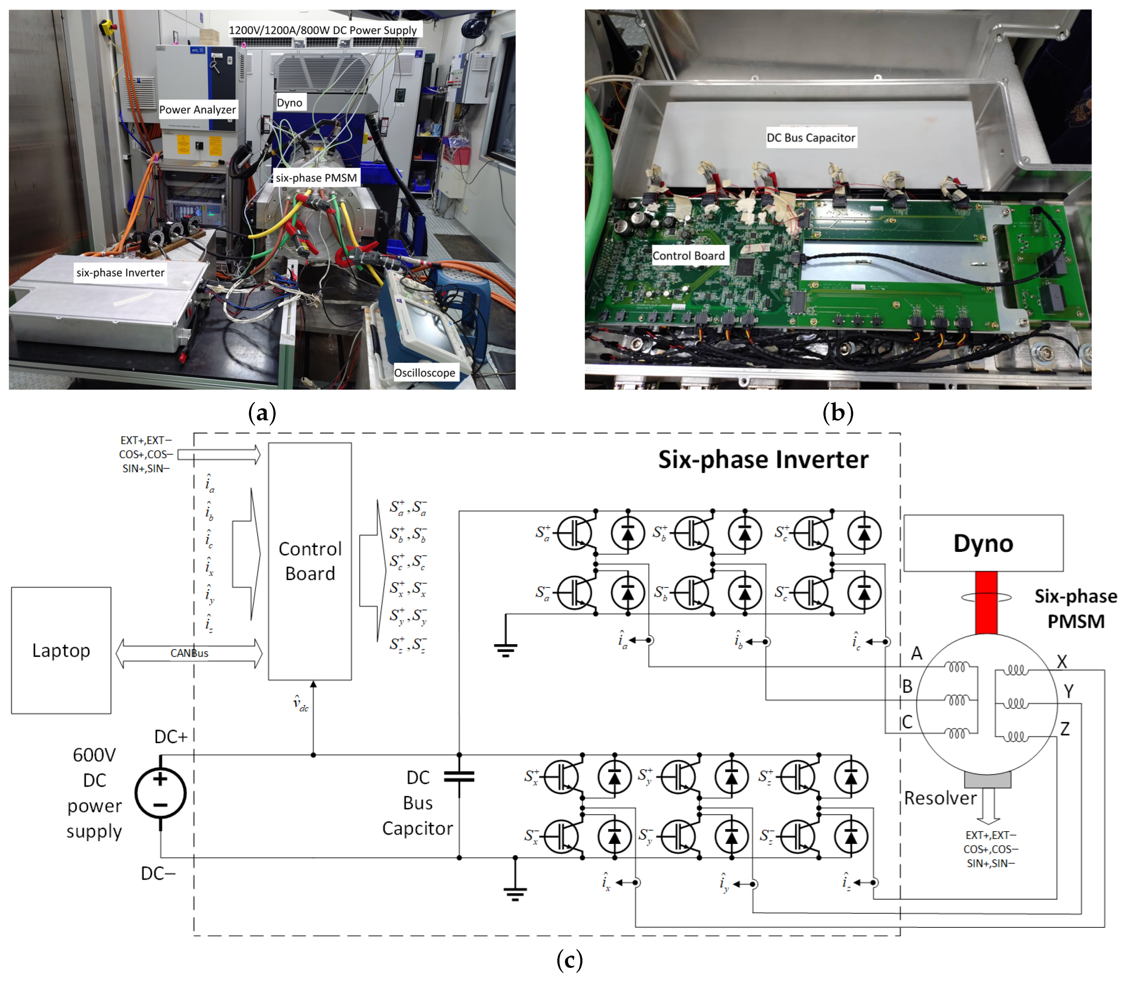 - Lin, Y.-T.; Hwang, J.-C.; Tsai, C.-T.; Lin, C.-T. Implementation of a Current Harmonics Suppression Strategy for a Six-Phase Permanent Magnet Synchronous Motor. Energies 2025, 18, 665. [Google Scholar] [CrossRef]