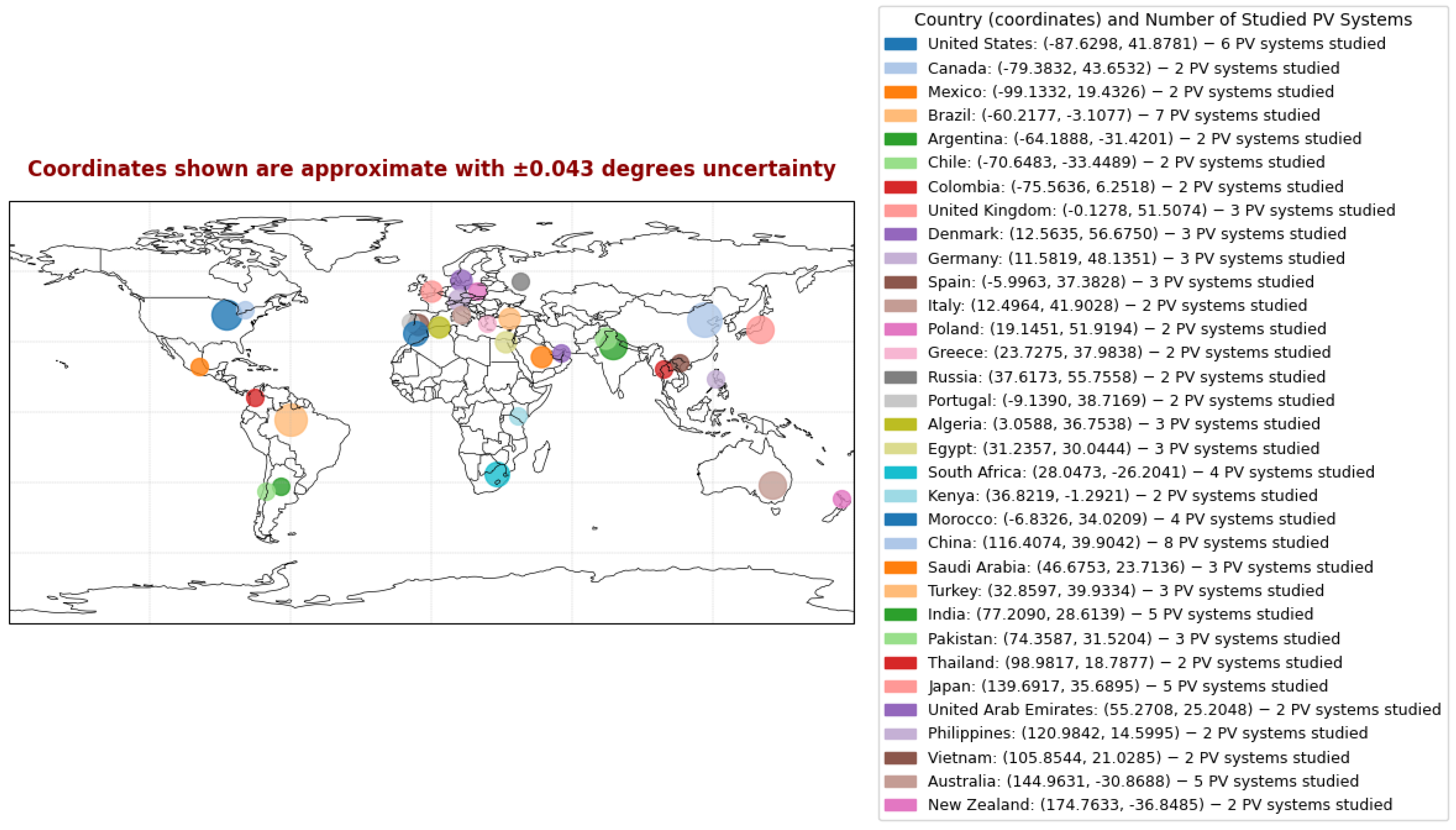 | Climate | Country (N° of PV Systems) | Total N° of PV Systems |