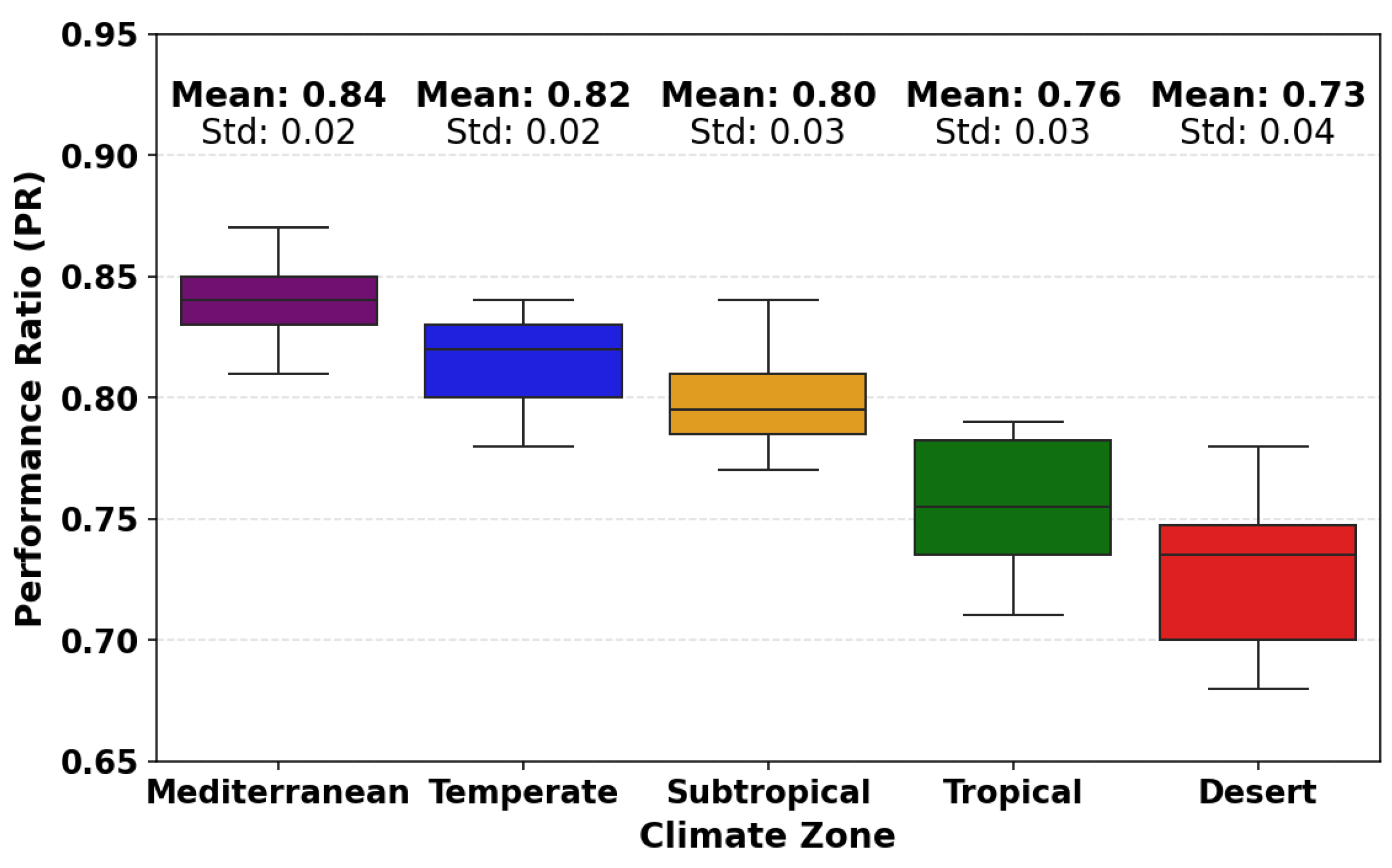| MPPT Faults (%) | 19.7784 | 0.000552 | 0.5635 | Desert > Subtropical (p = 0.0281); Desert > Mediterranean (p = 0.00479); Desert > Temperate (p = 0.0153) |