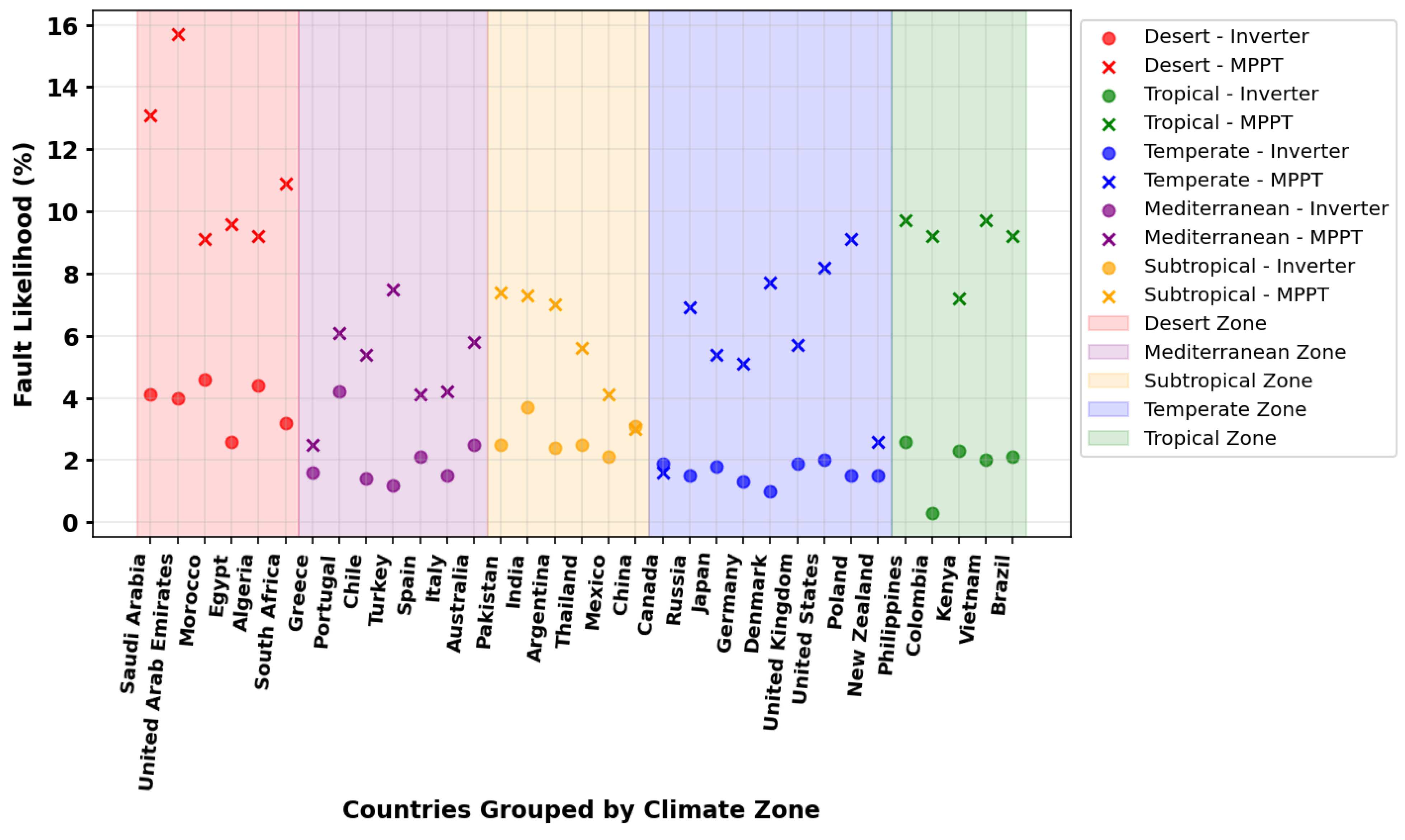 | Climate Zone | Median Inverter Fault Likelihood (%) | Median MPPT Fault Likelihood (%) |