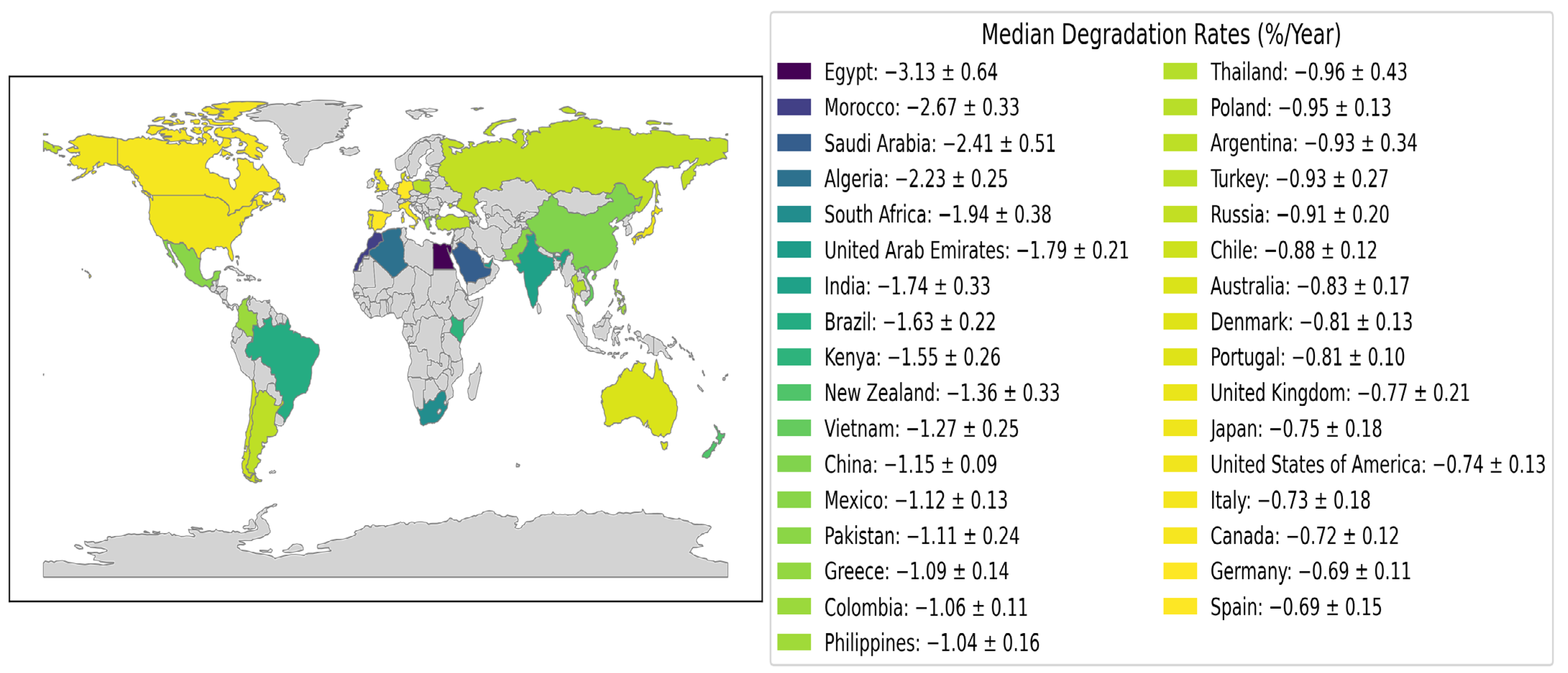 | Country [Ref.] | Degradation Rate (%/year) | |