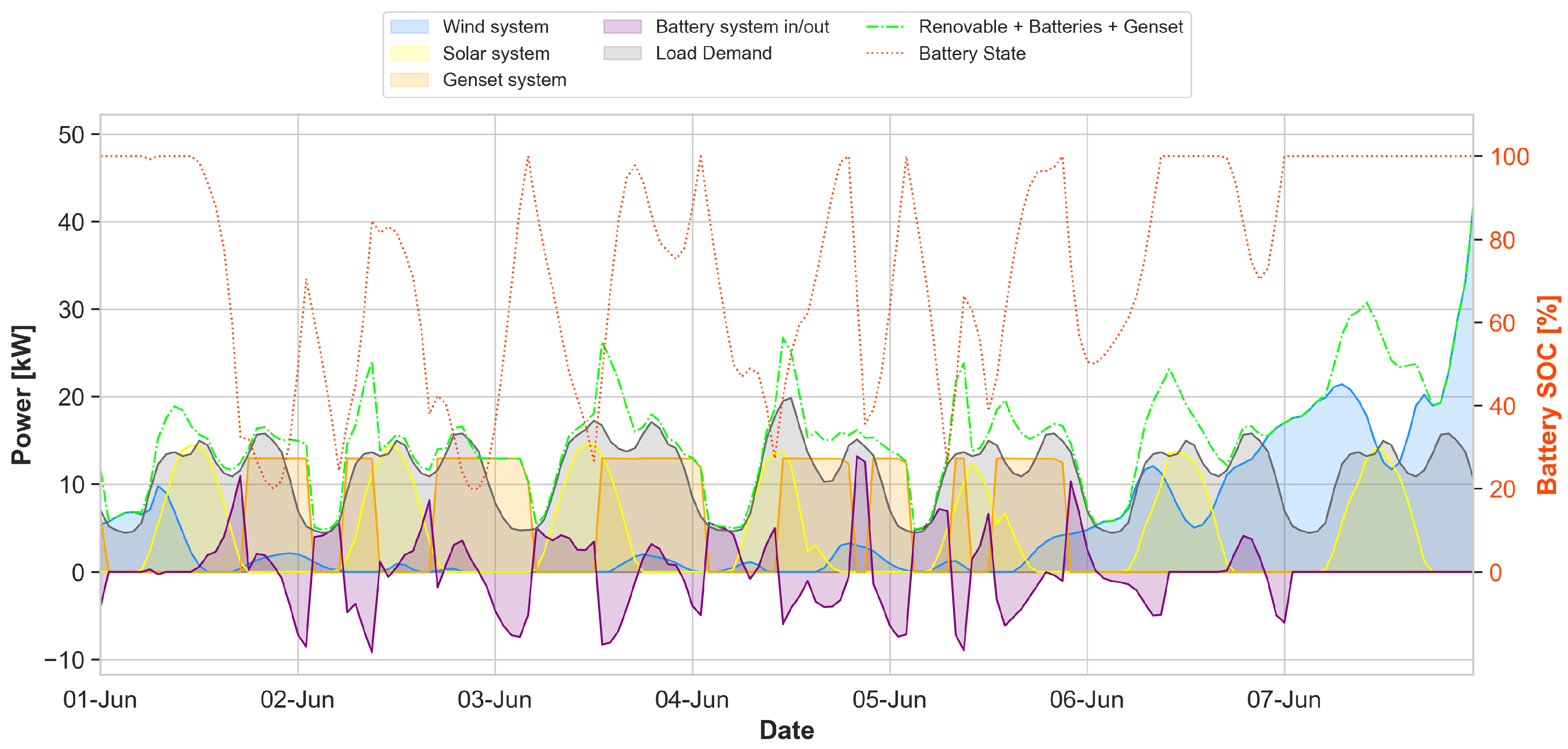Turcios, L.J.; Torres-Madroñero, J.L.; Cárdenas, L.M.; Jiménez, M.; Nieto-Londoño, C. Assessment of Hybrid Renewable Energy System: A Particle Swarm Optimization Approach to Power Demand Profile and Generation Management. Energies 2025, 18, 6141. https://doi.org/10.3390/en18236141