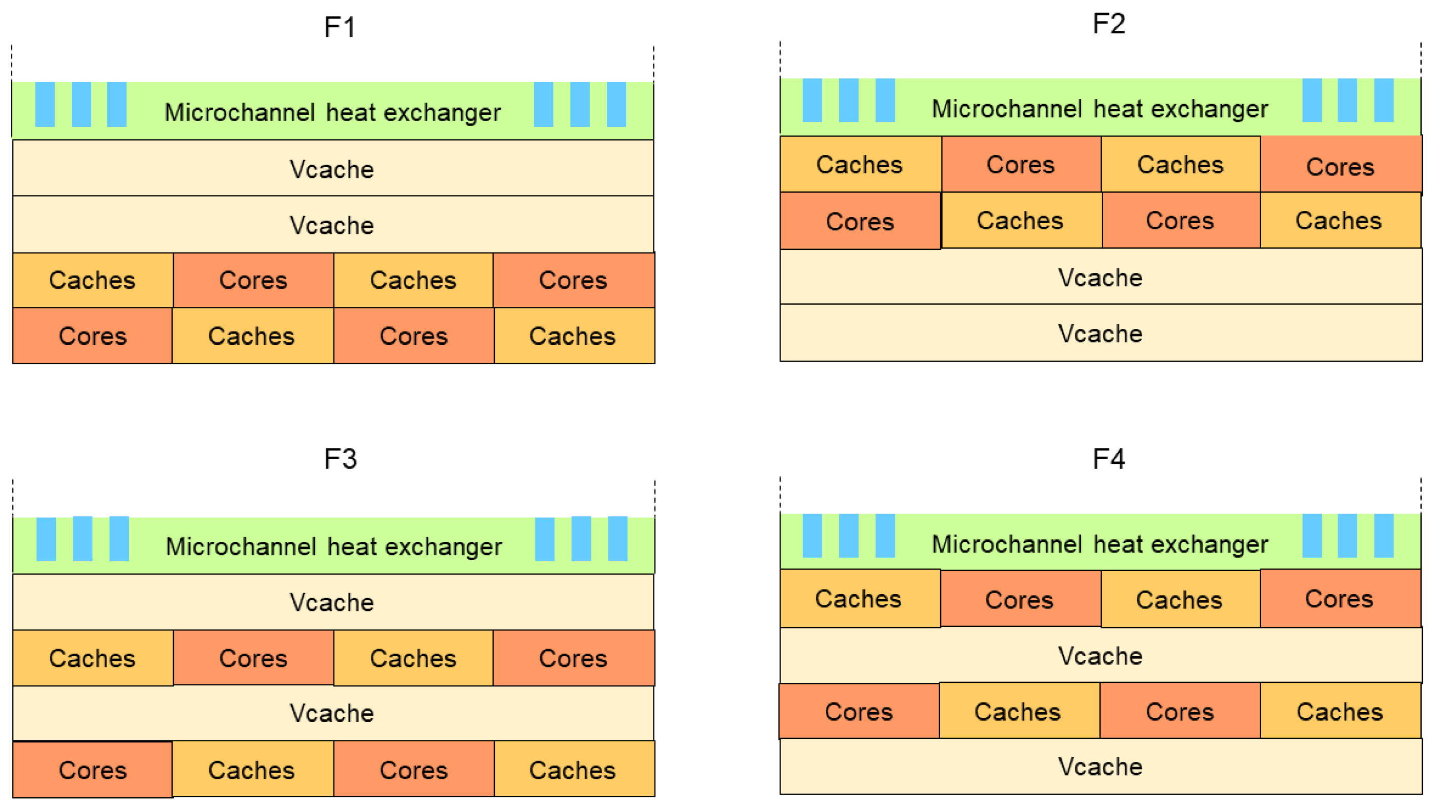 | Power dissipation per layer (V-caches) | 4 W (unless otherwise specified) |