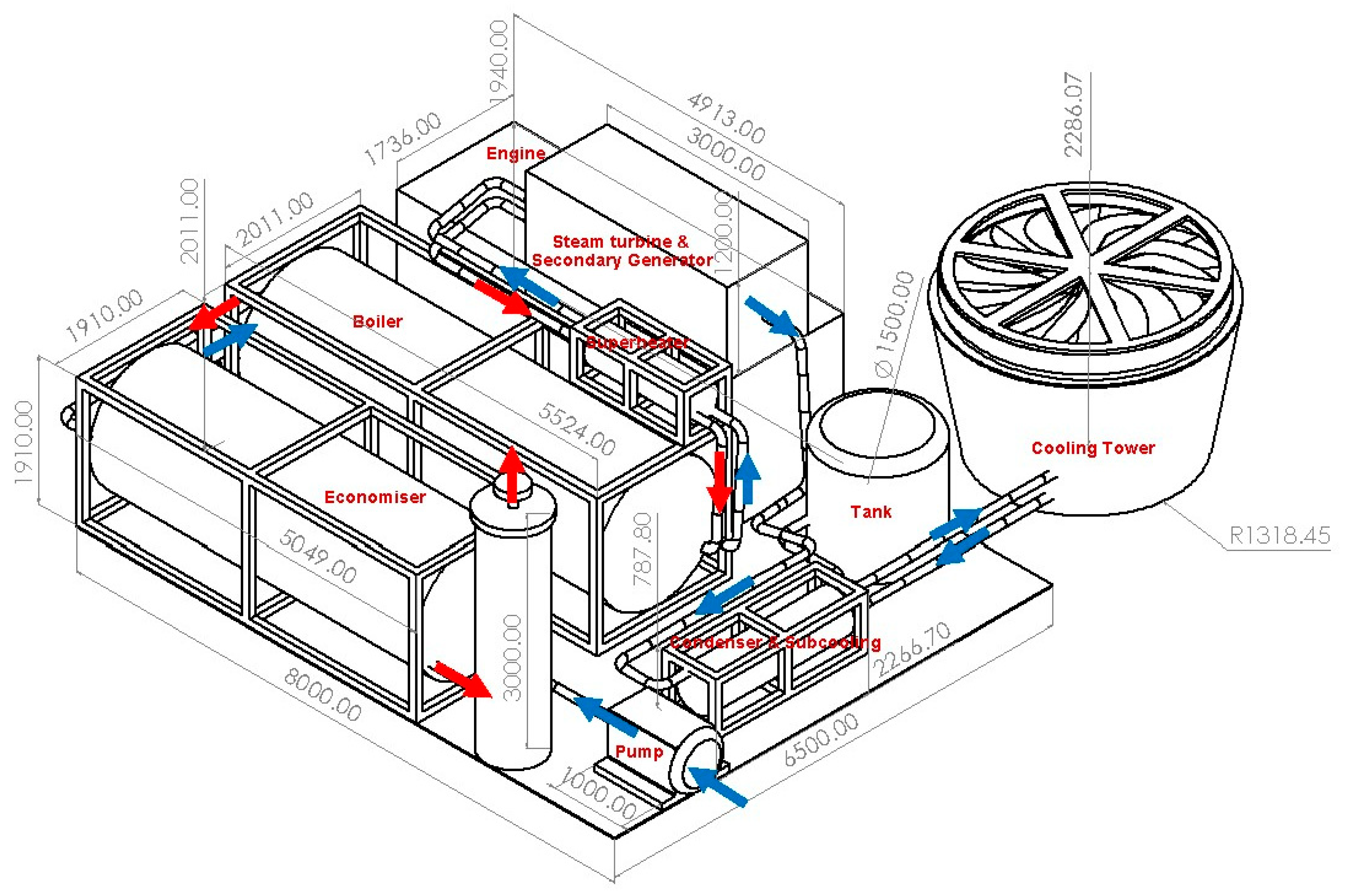Figure 2 shows the schematic diagram of the WHR system. The components are