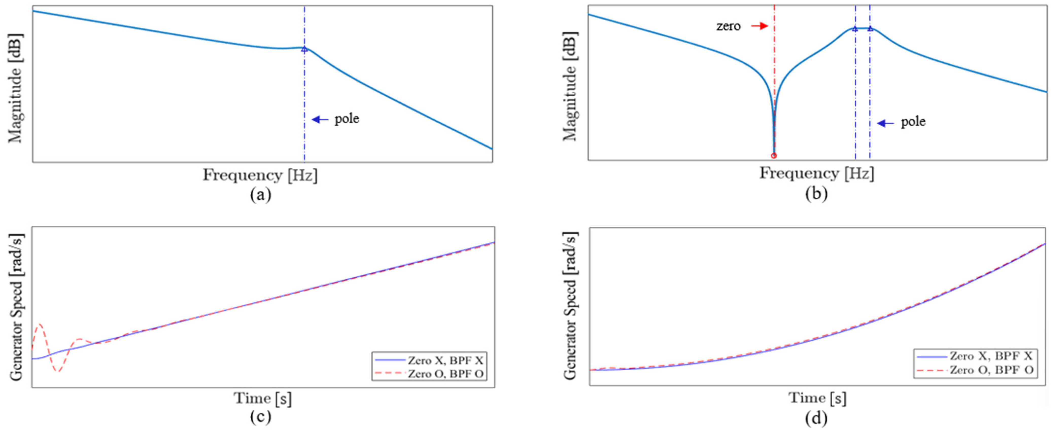 Furthermore, previous studies did not consider the transfer function of the BPF used to extract a specific frequency band from the generator speed. The transfer function of the band-pass filter (BPF) is expressed as follows.