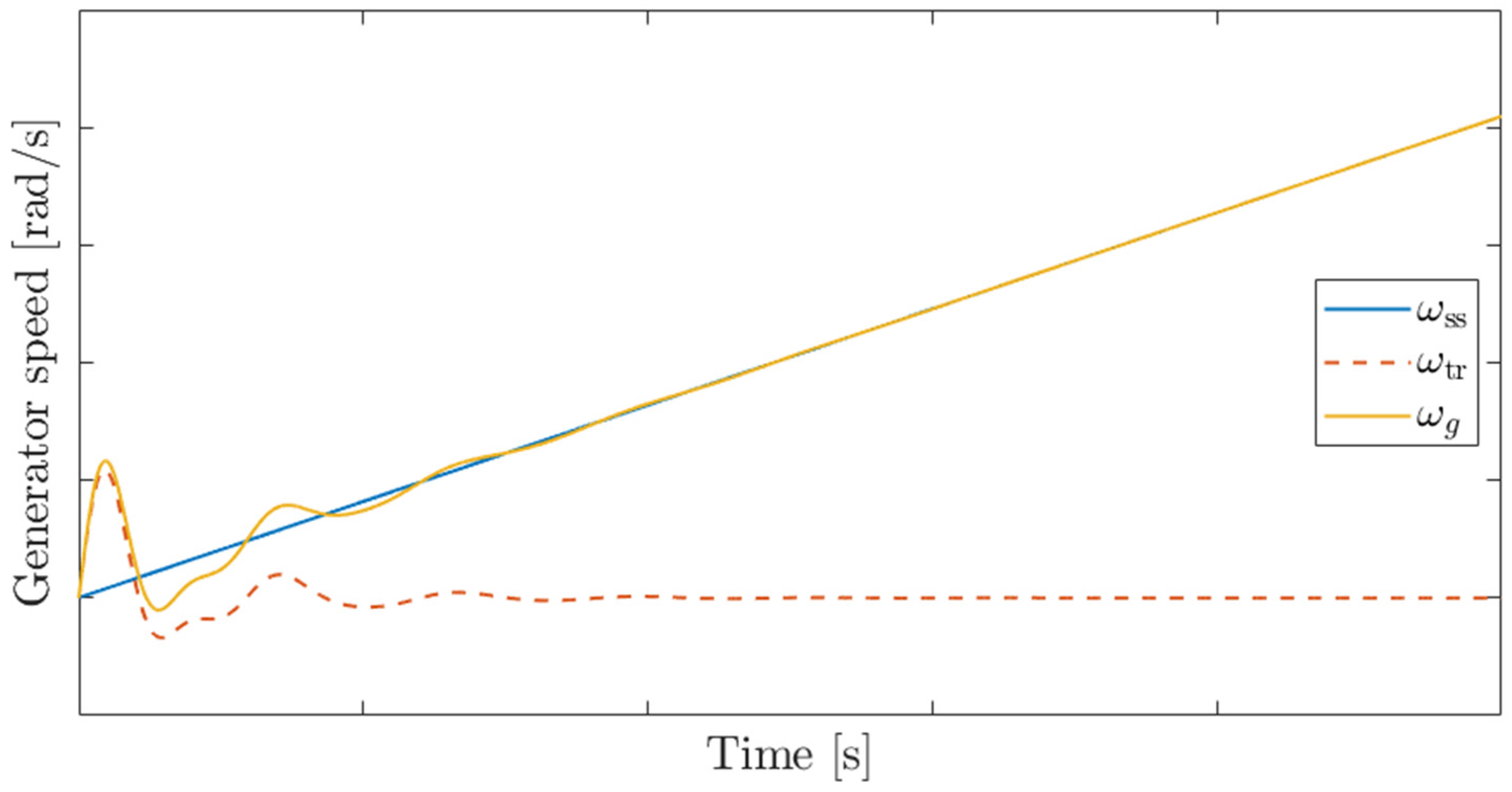 The time-domain response of the generator speed can be decomposed into steady-state and transient components, with the steady-state component expressed as follows.