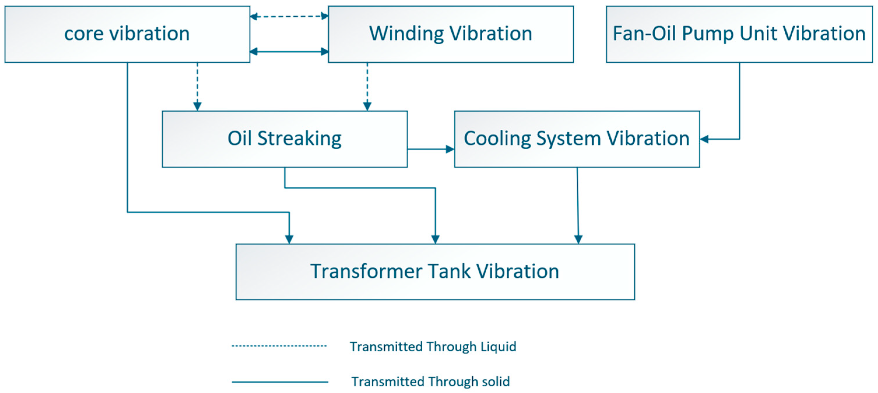 2.1. Structural Composition and Vibration Constituents of Oil-Immersed Power Transformers