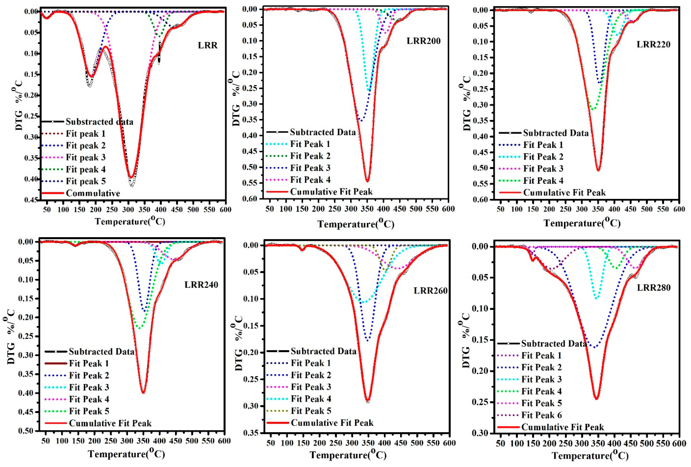 | Volatile matter | 68.90 ± 0.21 | 67.73 ± 0.78 | 63.92 ± 0.07 | 62.22 ± 0.10 | 57.75 ± 1.69 | 56.22 ± 0.73 |