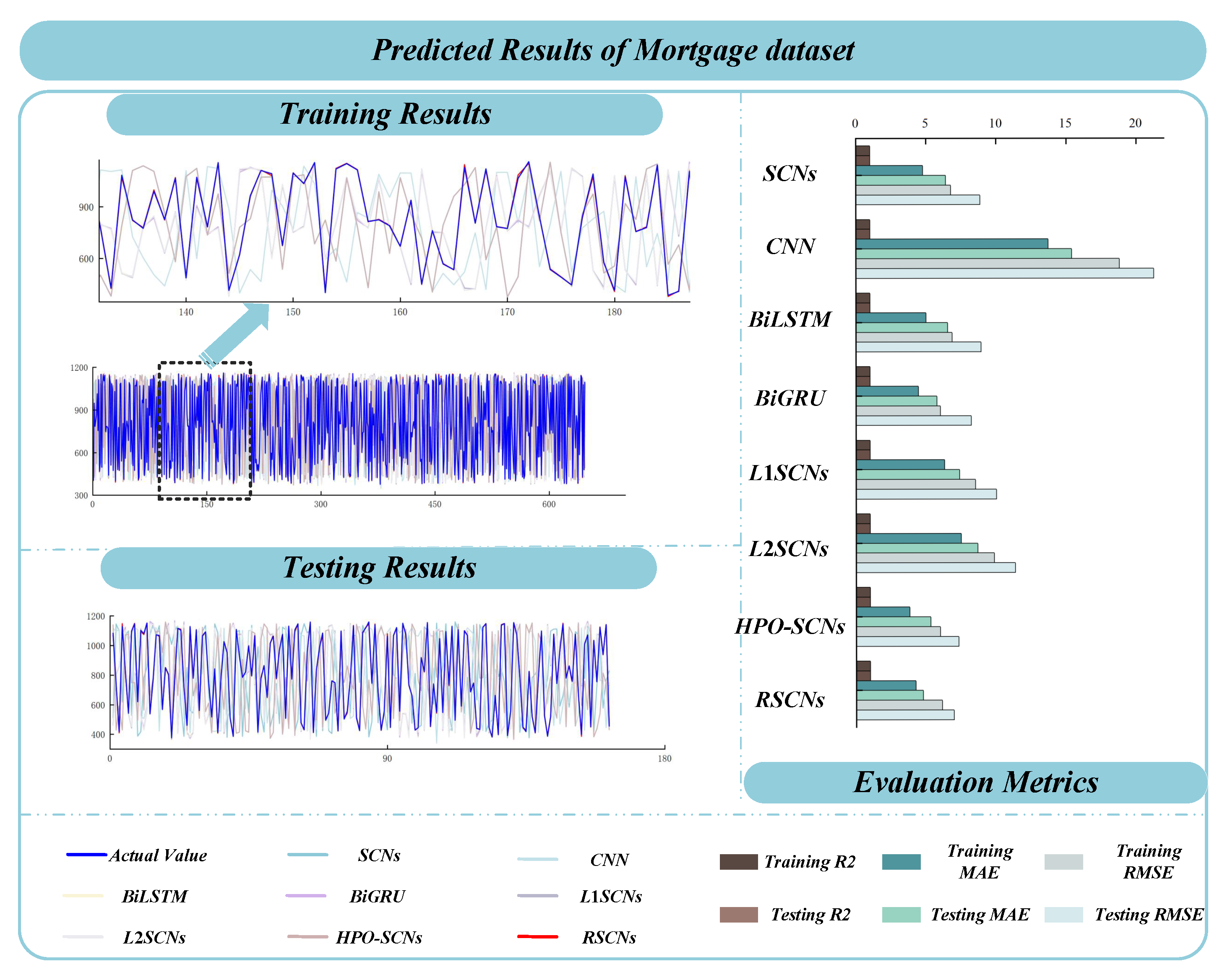 | Mortgage | SCNs | 0.9993 ± 0.0002 | 4.7576 ± 0.7304 | 6.7721 ± 1.8115 | 0.9980 ± 0.0005 | 7.0892 ± 1.4439 | 9.3939 ± 2.0125 |