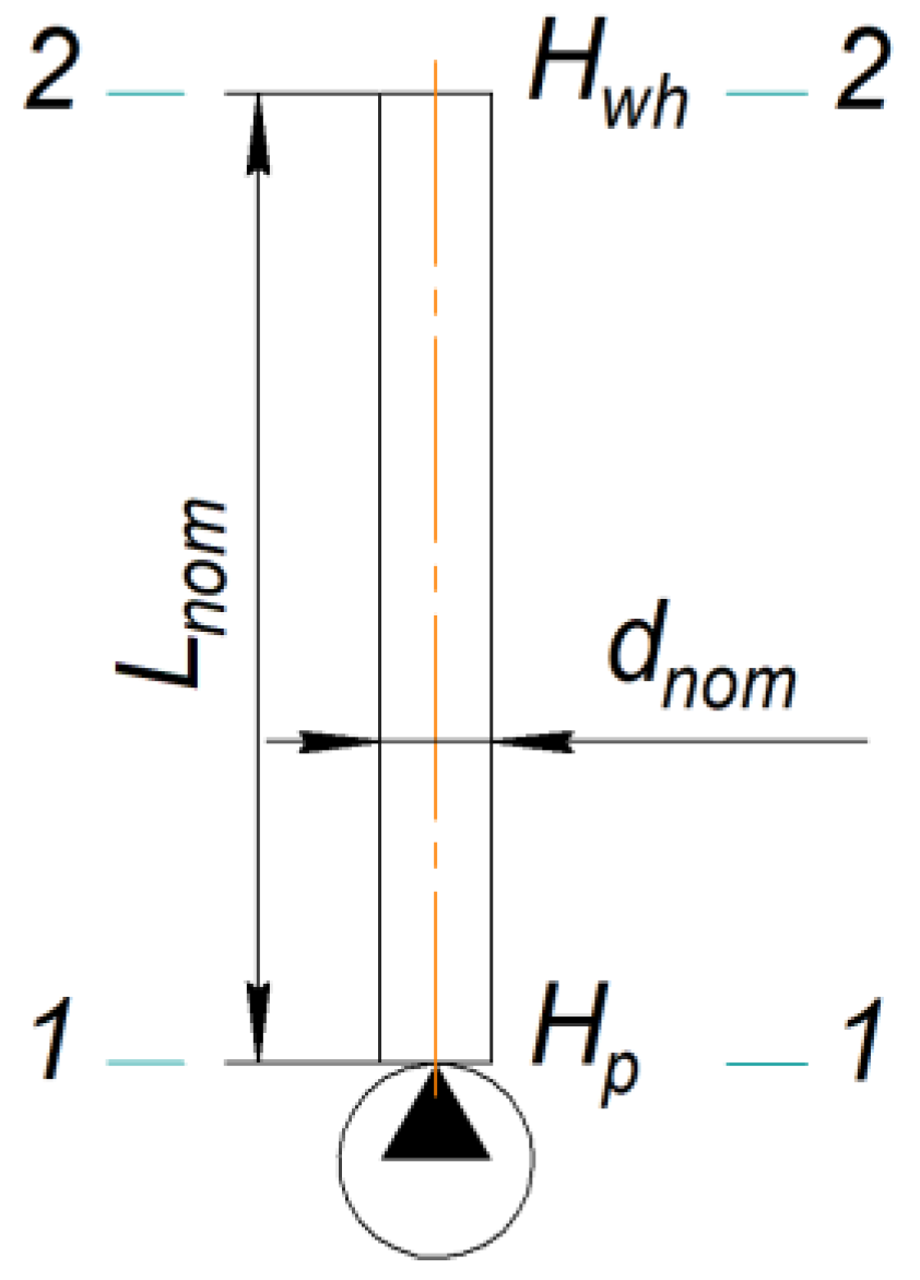 The following assumptions are considered. First, the speed of the pumped oil at the pump outlet and at the wellhead is taken to be approximately equal: v1 ≈ v2, m/s. Second, the coefficient of local resistance along the length of the oil-well tubing pressure is assumed to be zero: ξ = 0.