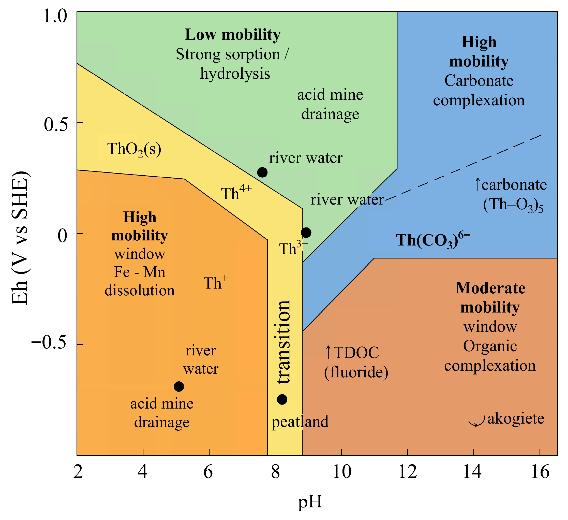 - In organic-rich reducing settings, Th occurs as stable organo-complexes of intermediate mobility.