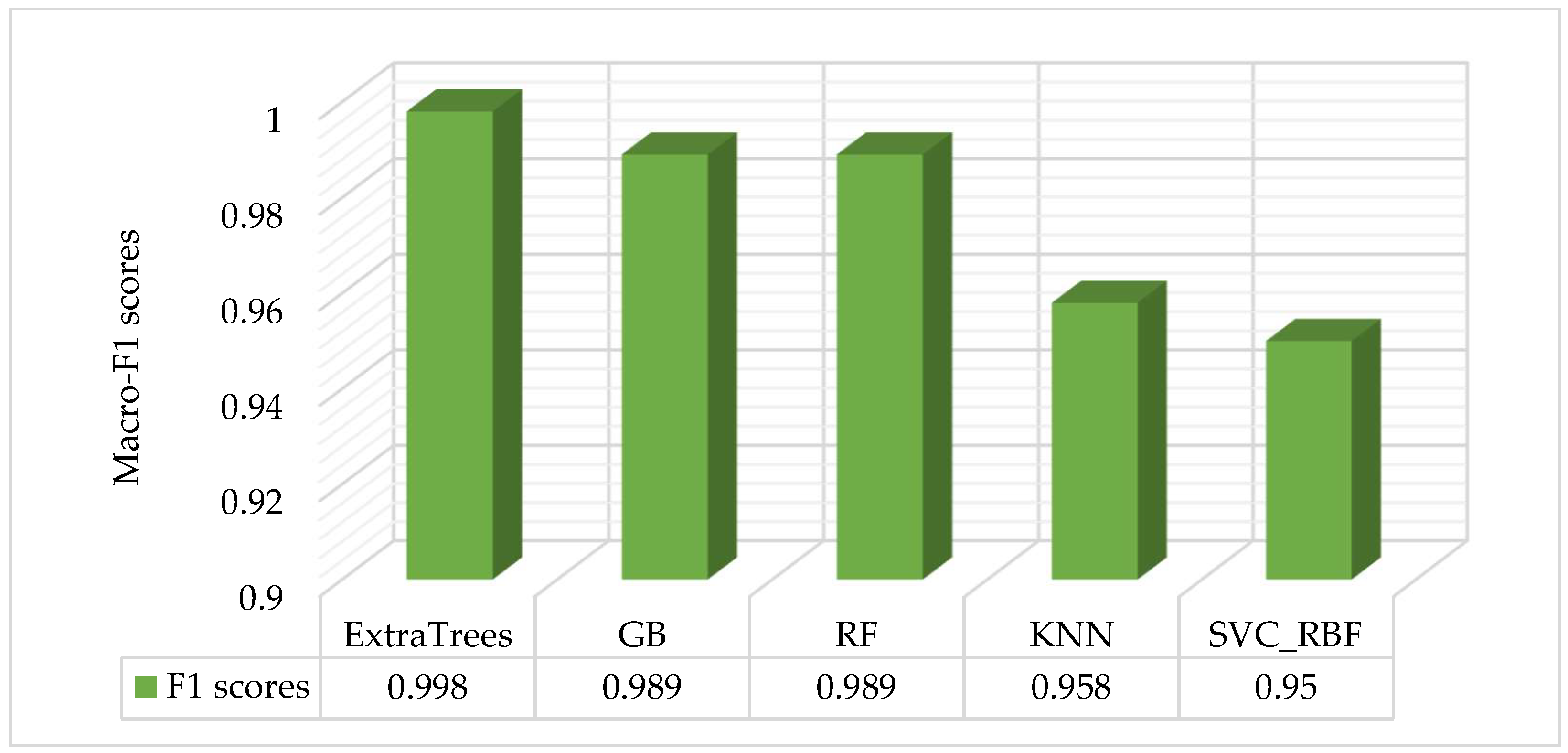 where N is the number of classes, and Precisioni and Recalli are the precision and recall for class i, respectively. The Macro F1 Score averages the F1 scores of each class, giving equal weight to all classes, regardless of their frequency in the dataset [