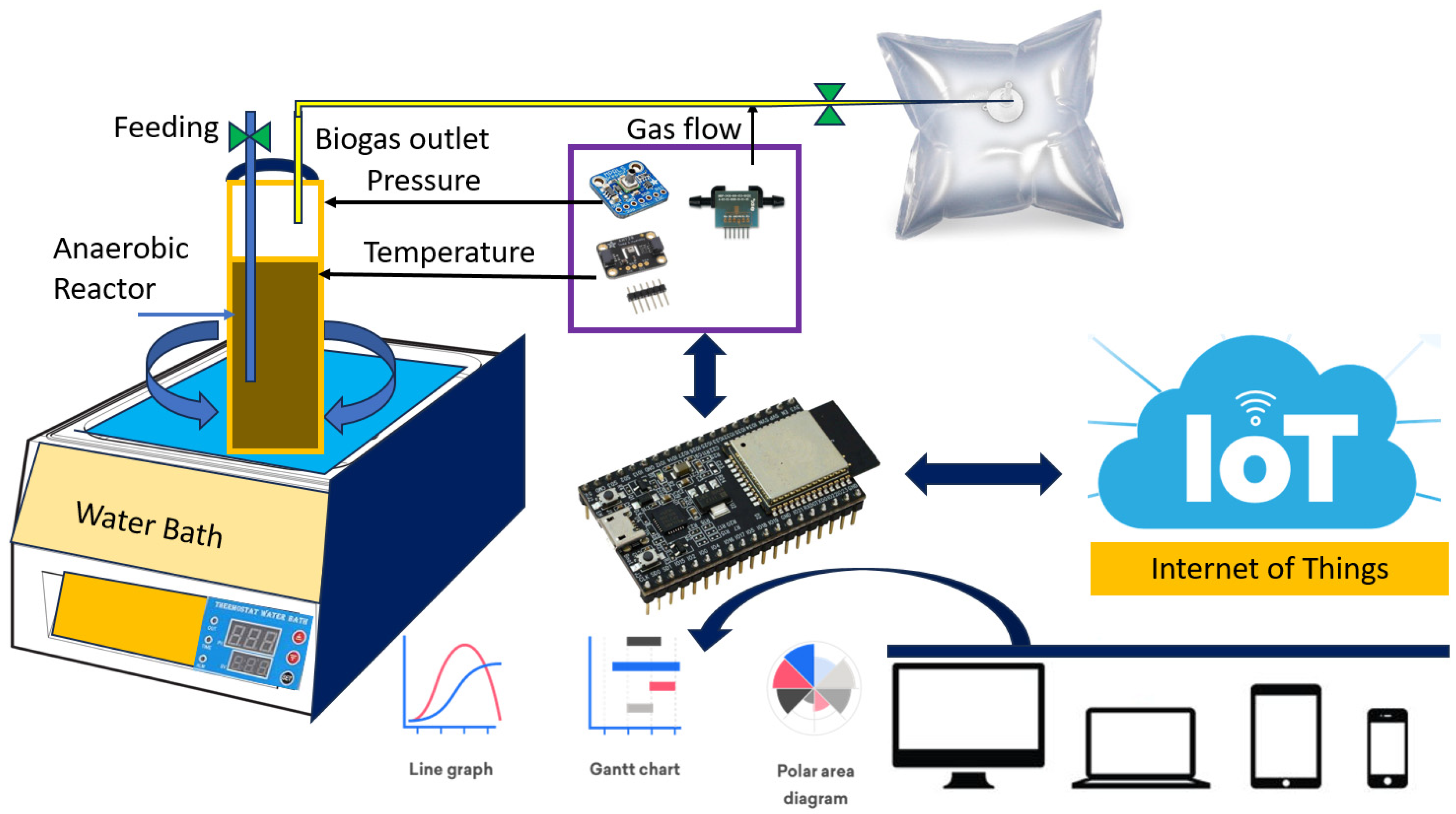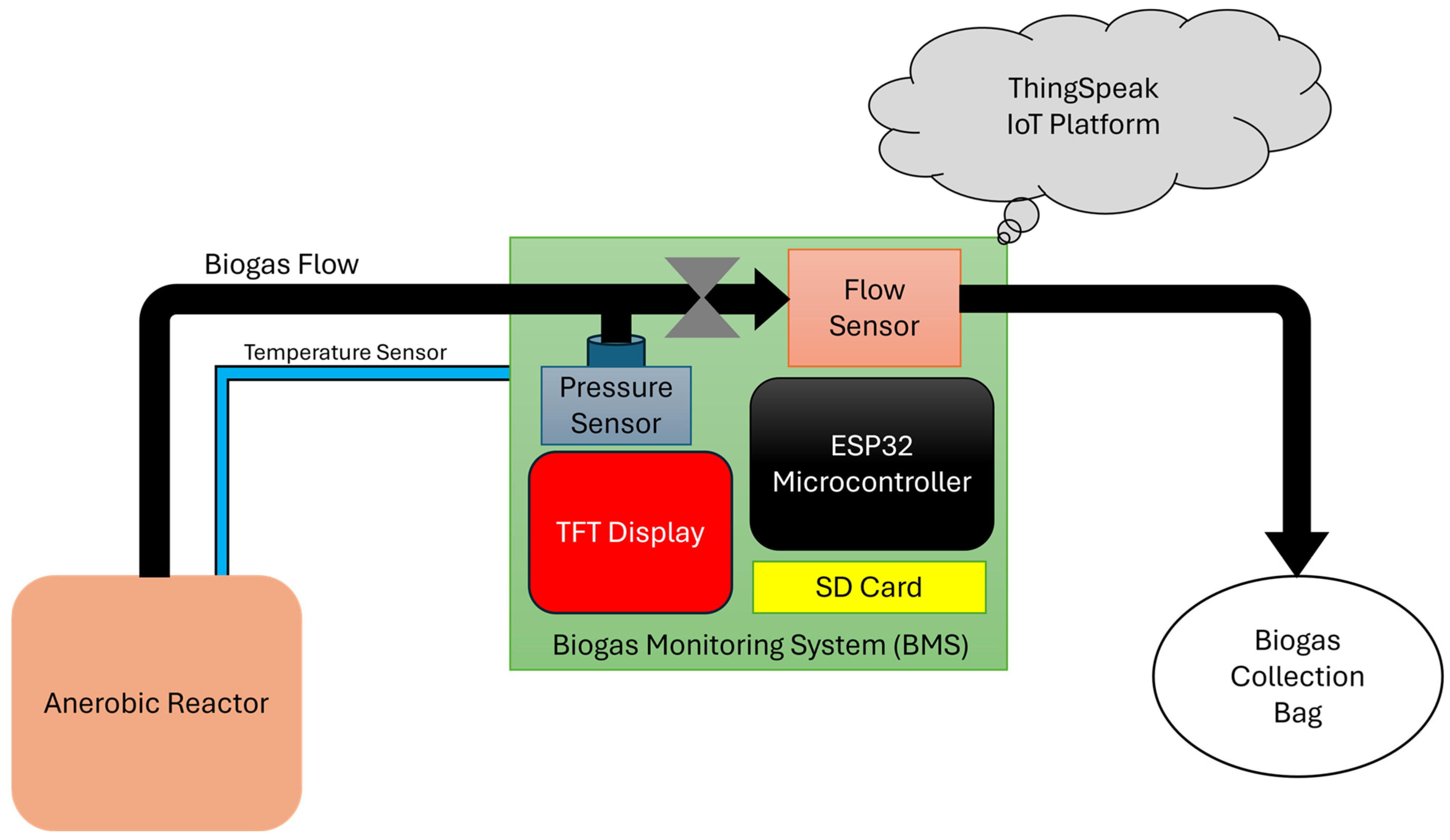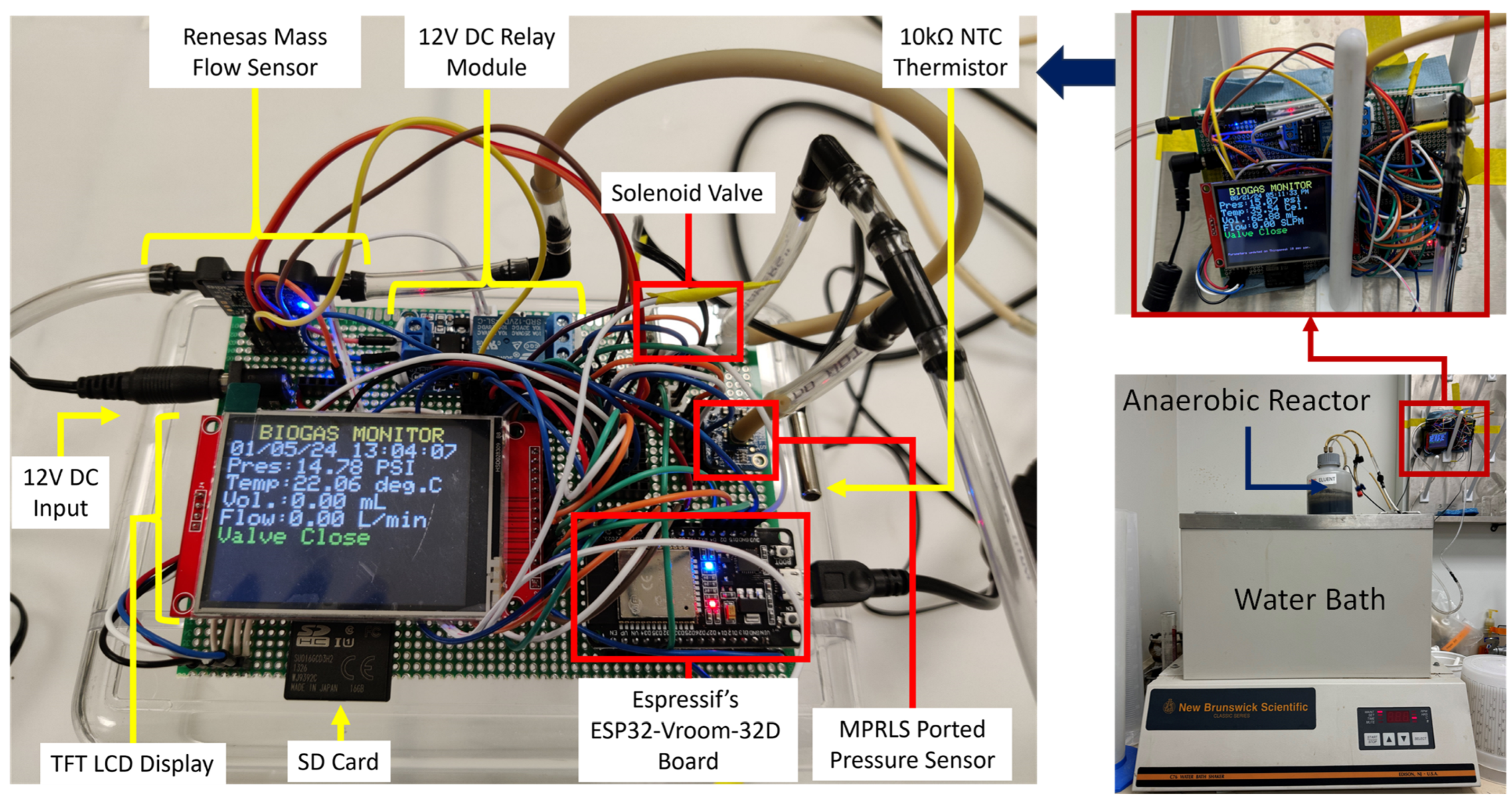 - Pandey, A.; Momeni, O.; Pandey, P. Design and Implementation of IoT-Enabled Device for Real-Time Monitoring of Greenhouse Gas Emissions, and Pressure in Anaerobic Reactors. IEEE Access 2024, 12, 133848–133862. [Google Scholar] [CrossRef]