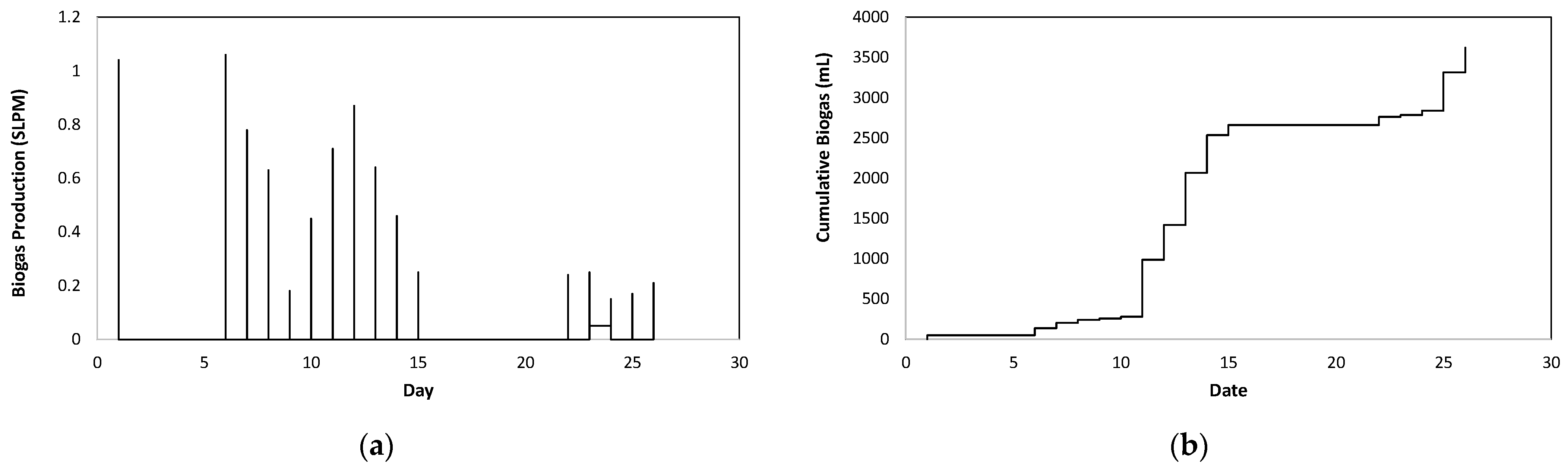 - Orhorhoro, E.K.; Ebunilo, P.O.; Sadjere, G.E. Experimental determination of effect of total solid (TS) and volatile solid (VS) on biogas yield. Am. J. Mod. Energy 2017, 3, 131–135. [Google Scholar] [CrossRef]