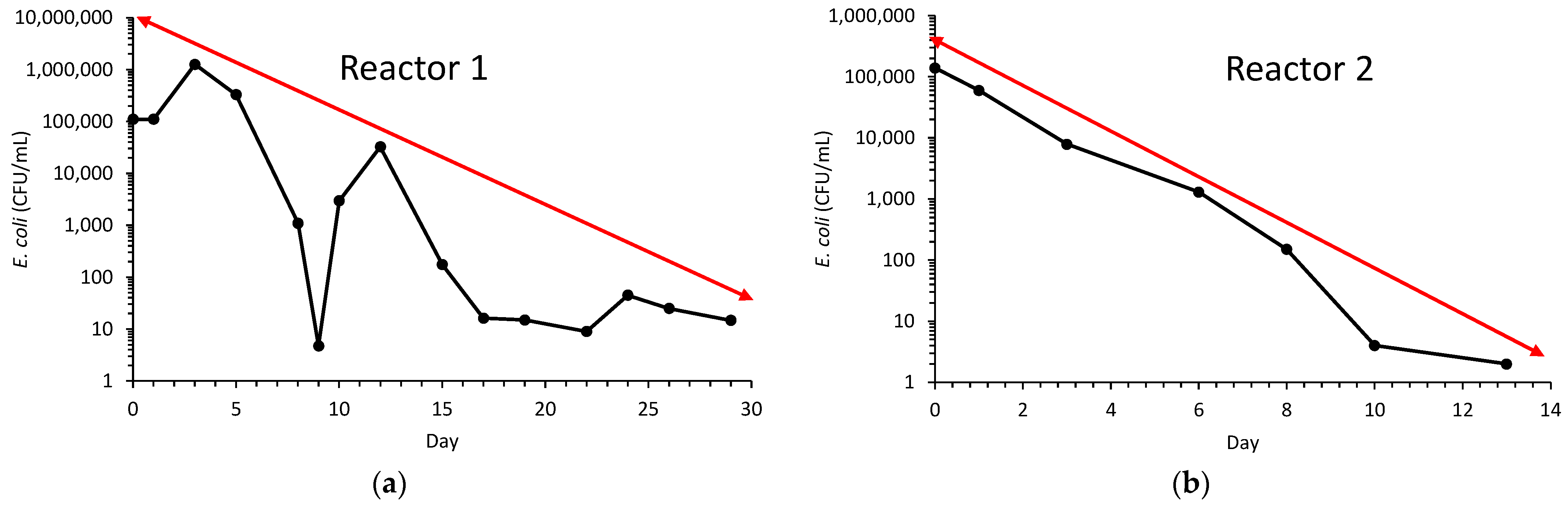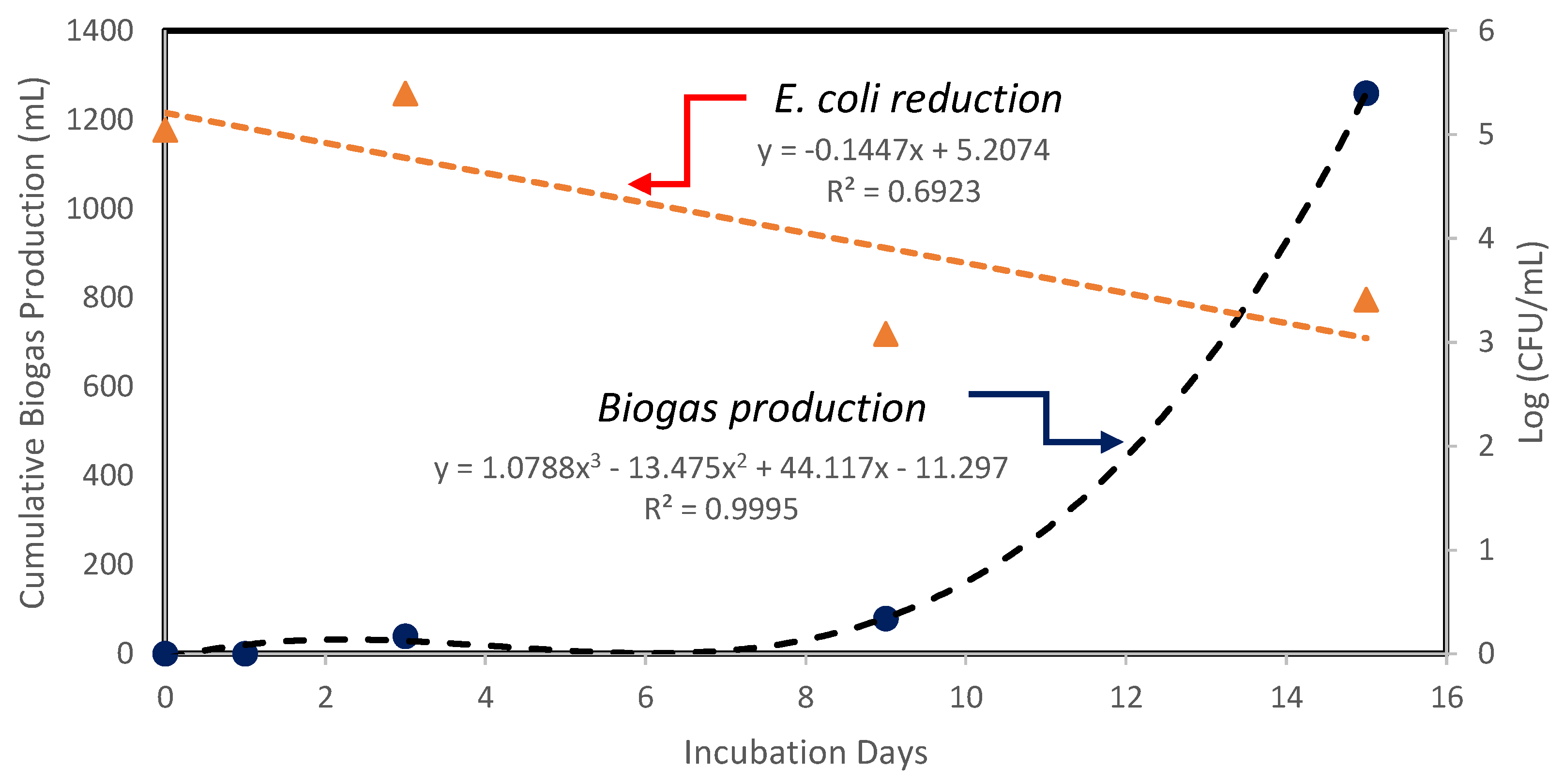 - Pandey, P.K.; Soupir, M.L. Escherichia coli inactivation kinetics in anaerobic digestion of dairy manure under moderate, mesophilic and thermophilic temperatures. AMB Express 2011, 1, 18. [Google Scholar] [CrossRef]