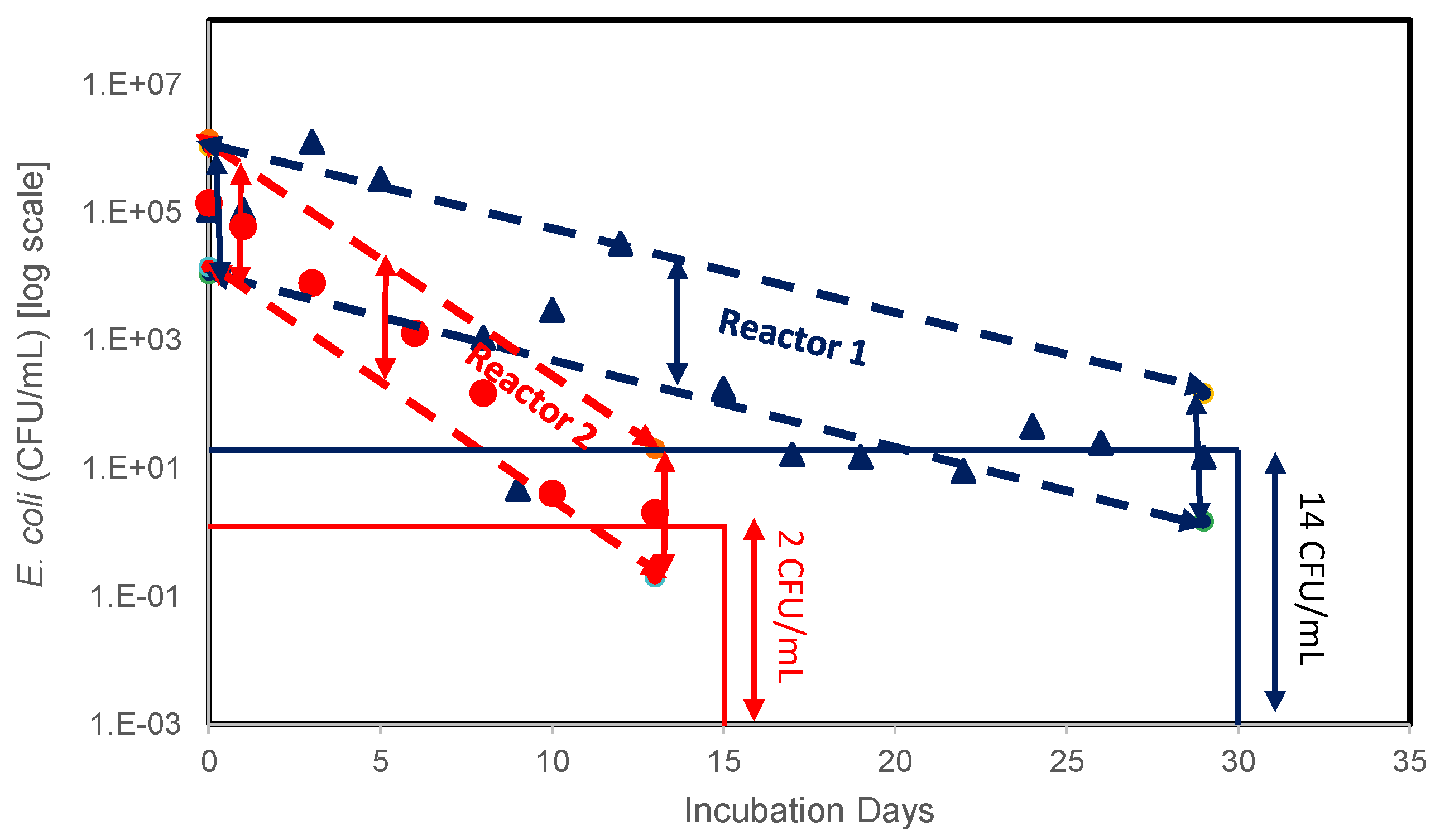 | E. coli reduction (log) | 1.63 | 4.84 |