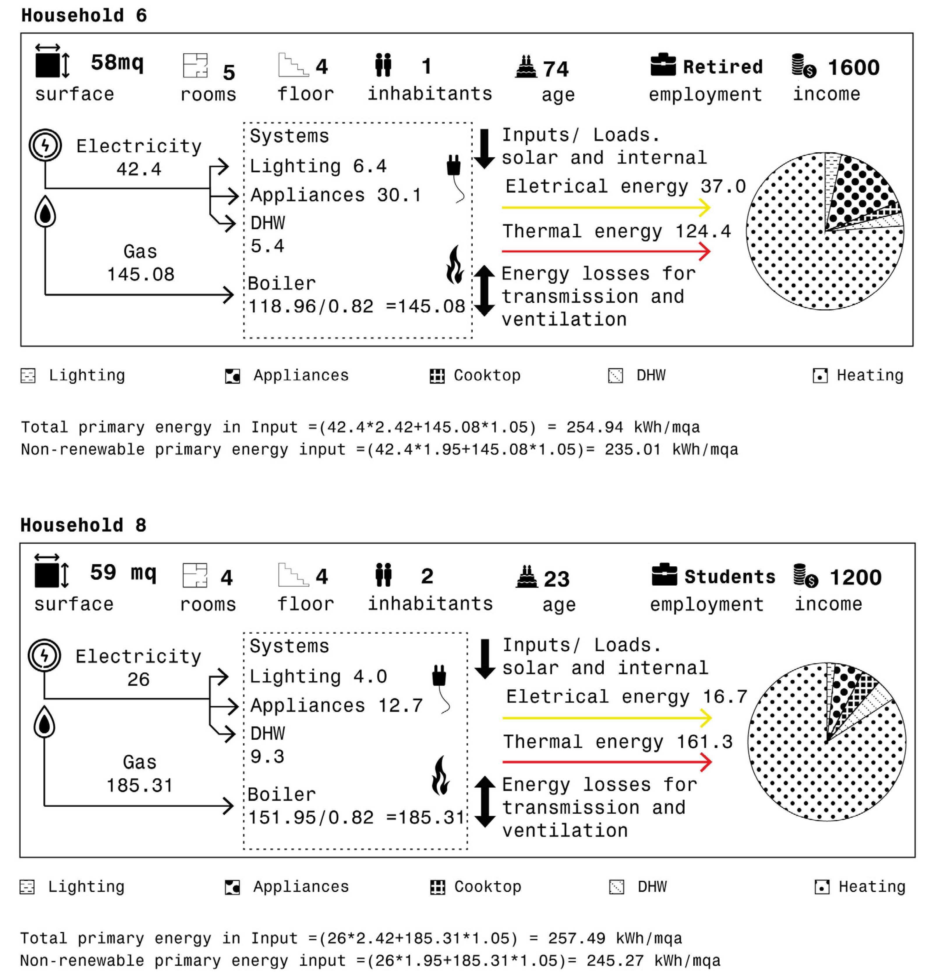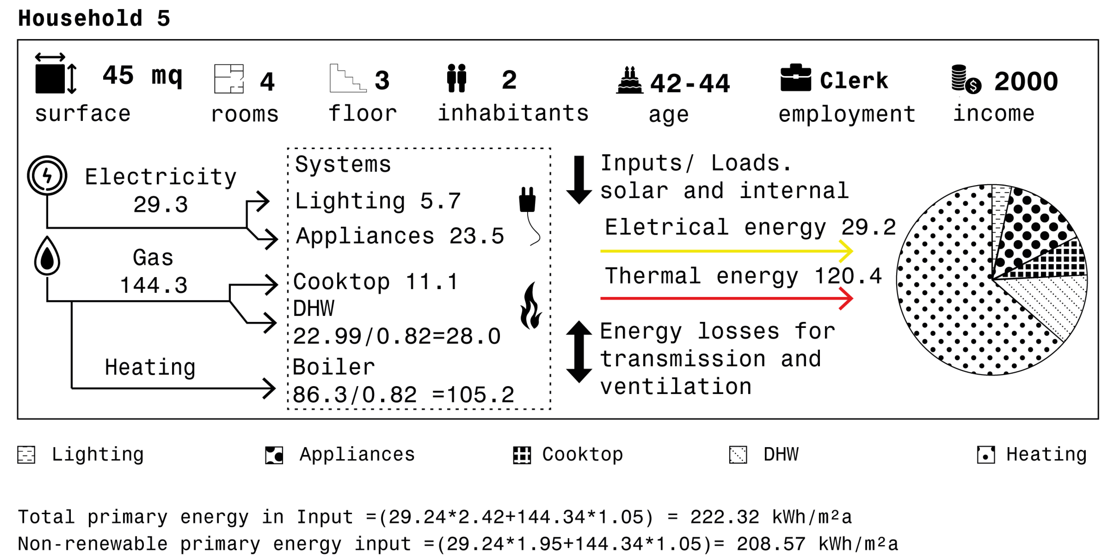 Appendix A). This variability reflects both technical factors, such as system efficiency and envelope quality, and behavioral aspects, including occupancy patterns and user practices. For completeness, additional representative examples of household energy balances are provided in