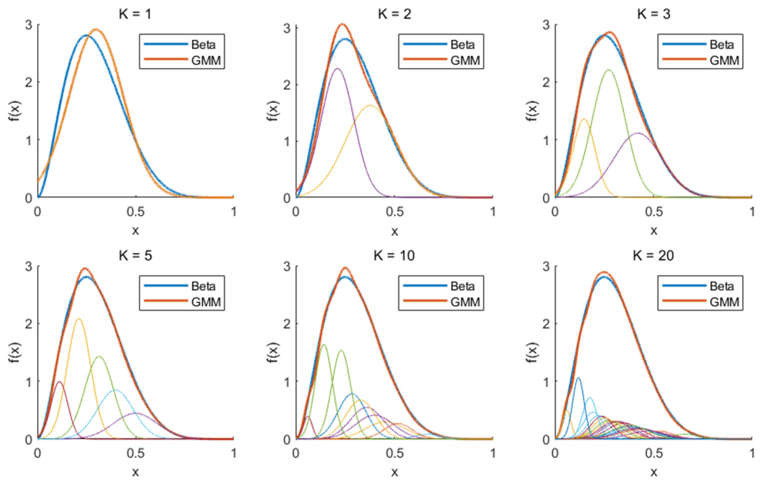 35], which theoretically can be fitted to any probability distribution, and the GMM can be represented by the following function: