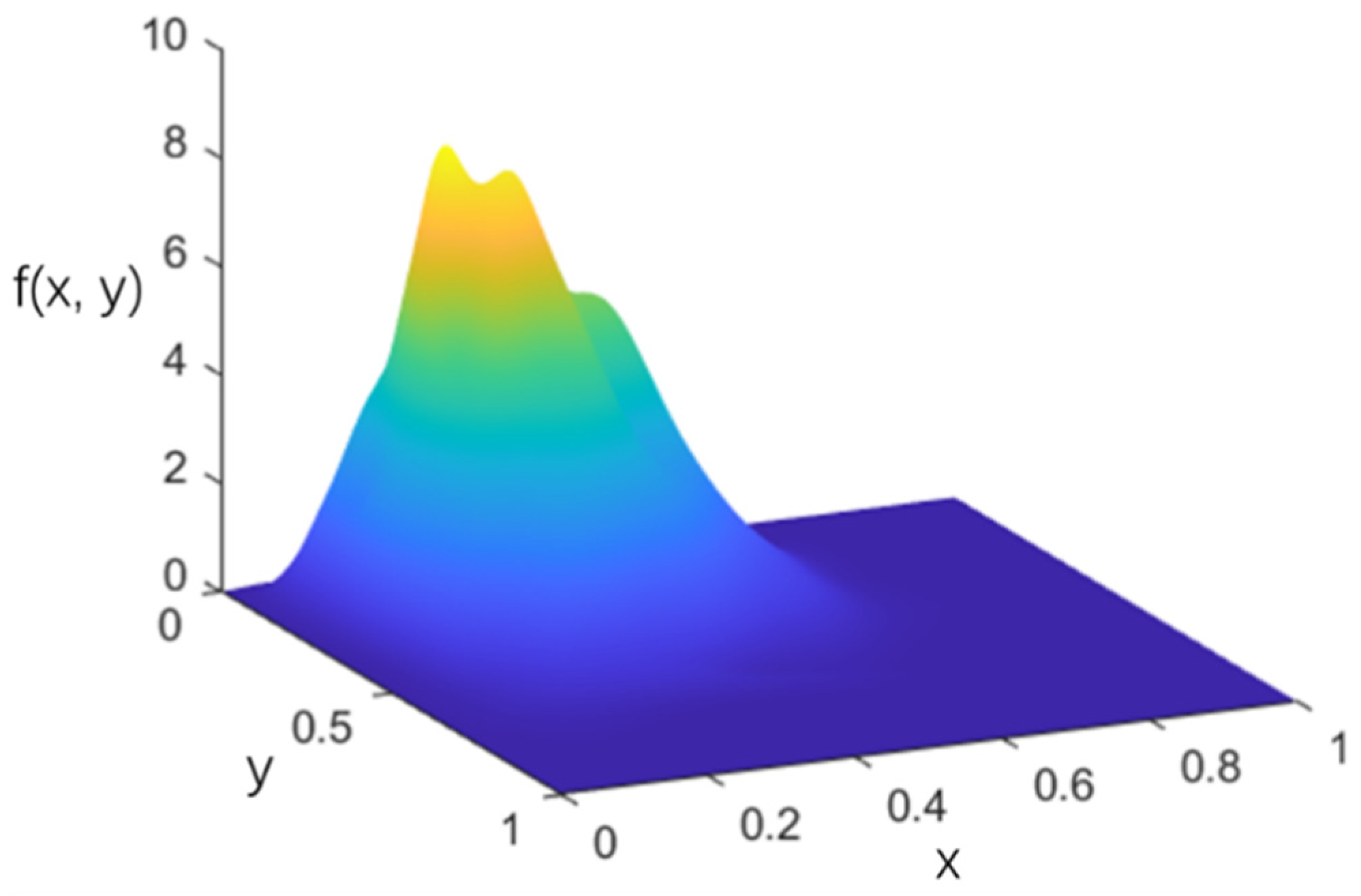 are assumed to be statistically independent but not identically distributed. The internal correlations within each group are captured through the covariance matrices of their respective GMM mixture components. Accordingly, the joint probability density function is formulated as the product of the two marginal GMM-based densities, as shown in Equation (10).