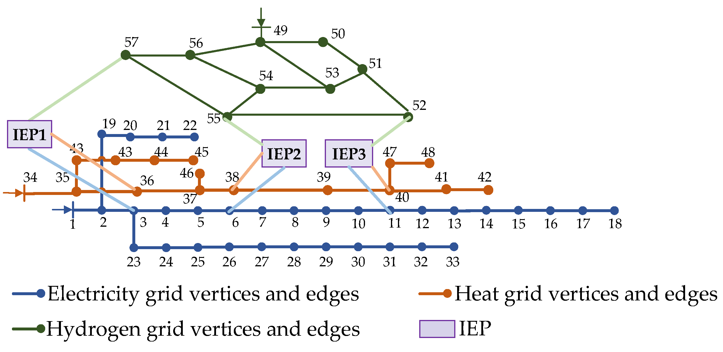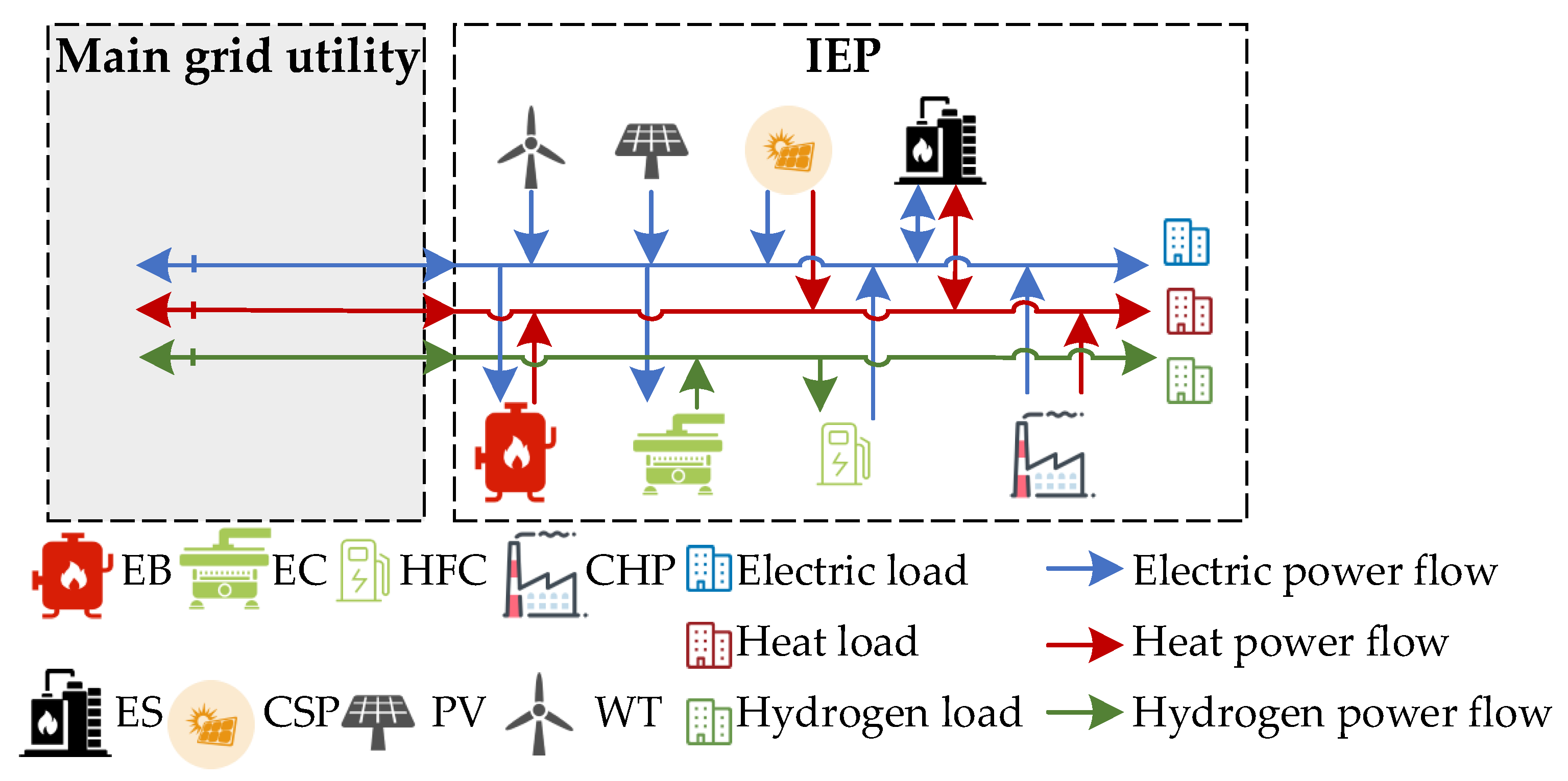 | Electricity, heat, and hydrogen energy trading prices between the upper-level energy network/IEP and the main grid utility at time t | |