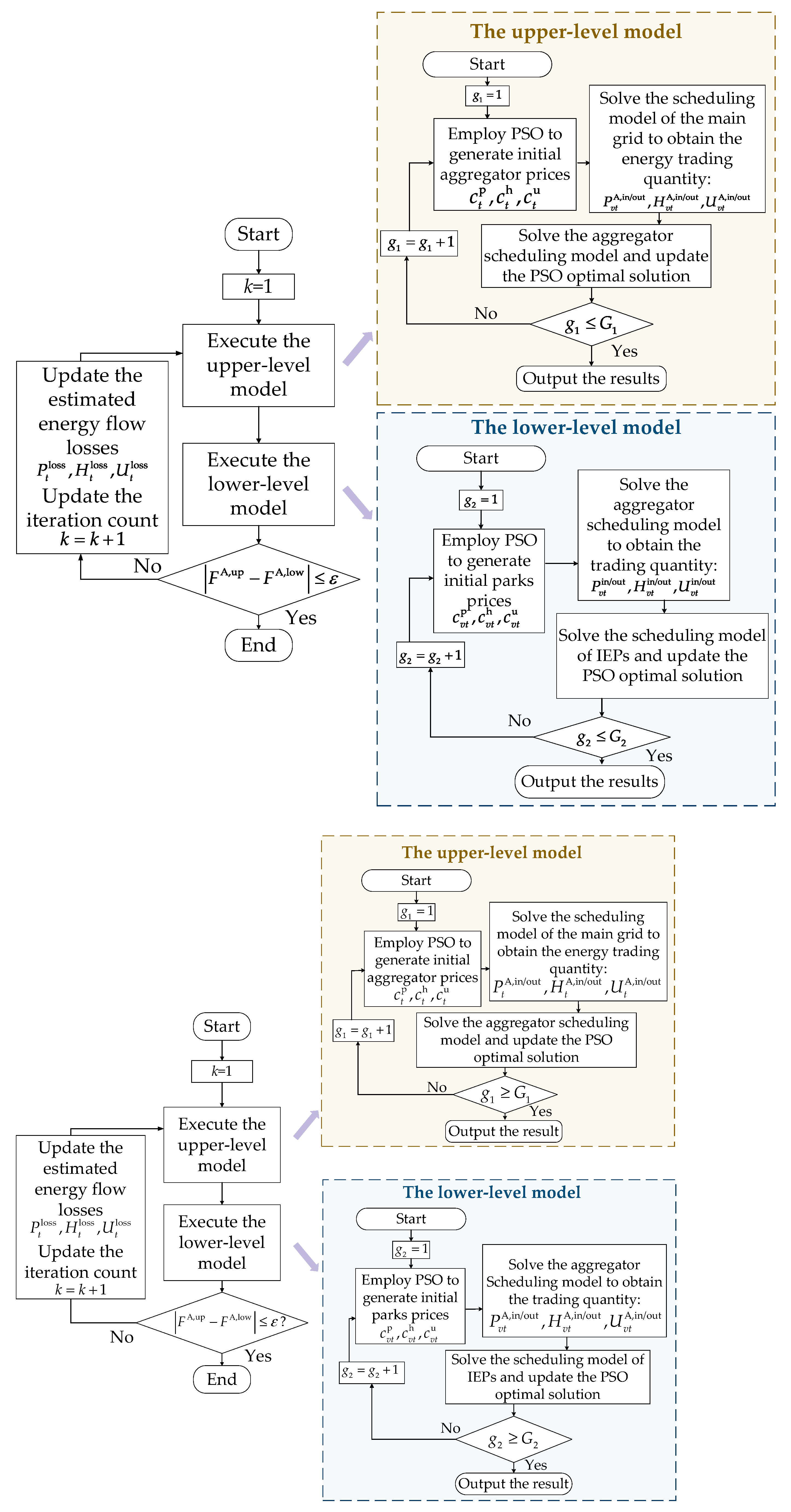 - Wang, Y.; Jin, Z.; Liang, J.; Li, Z.; Dinavahi, V.; Liang, J. Low-carbon optimal scheduling of park-integrated energy system based on bidirectional Stackelberg-Nash game theory. Energy 2024, 305, 132342. [Google Scholar]