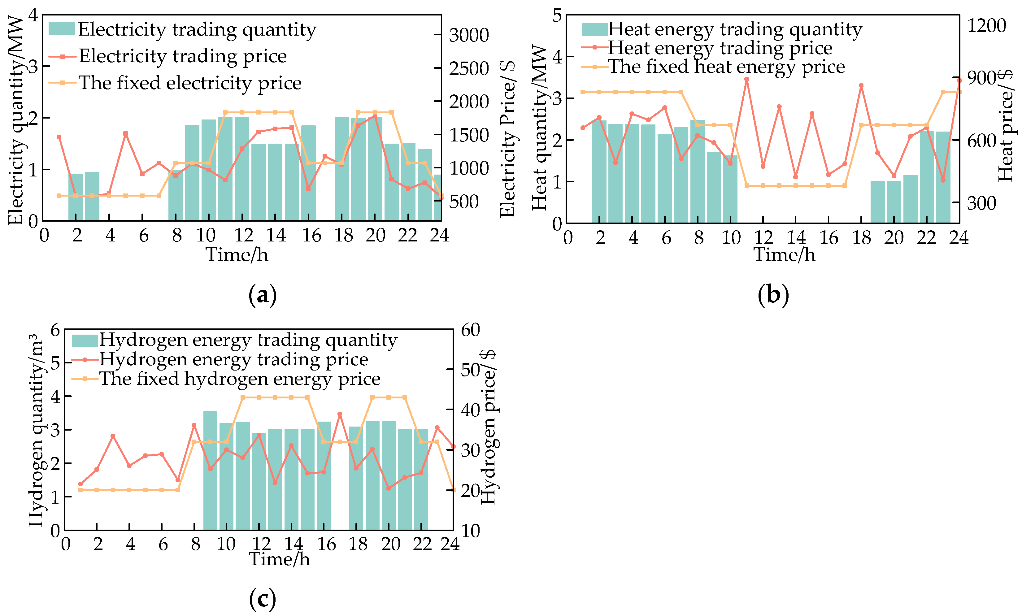 | Hydrogen energy purchasing cost from the upper-level energy network | 1364.79 | 906.74 | |