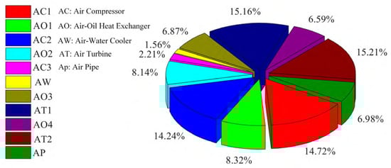 As illustrated in Figure 8, exergy analysis reveals that compressors and turbines are the dominant sources of loss, collectively accounting for approximately 65% of the total exergy destruction. This prominence is attributed to three primary factors: First, inherent mechanical dissipations such as bearing friction and seal leakage in this rotating machinery. Second, the substantial enthalpy changes they handle significantly amplify the intrinsic thermodynamic irreversibility. Third, operational deviations from design conditions further exacerbate efficiency degradation. Consequently, targeting these core components for improvement-through advanced aerodynamic designs, adaptive control strategies, and innovative sealing technologies-represents the most effective pathway to enhance overall system performance.