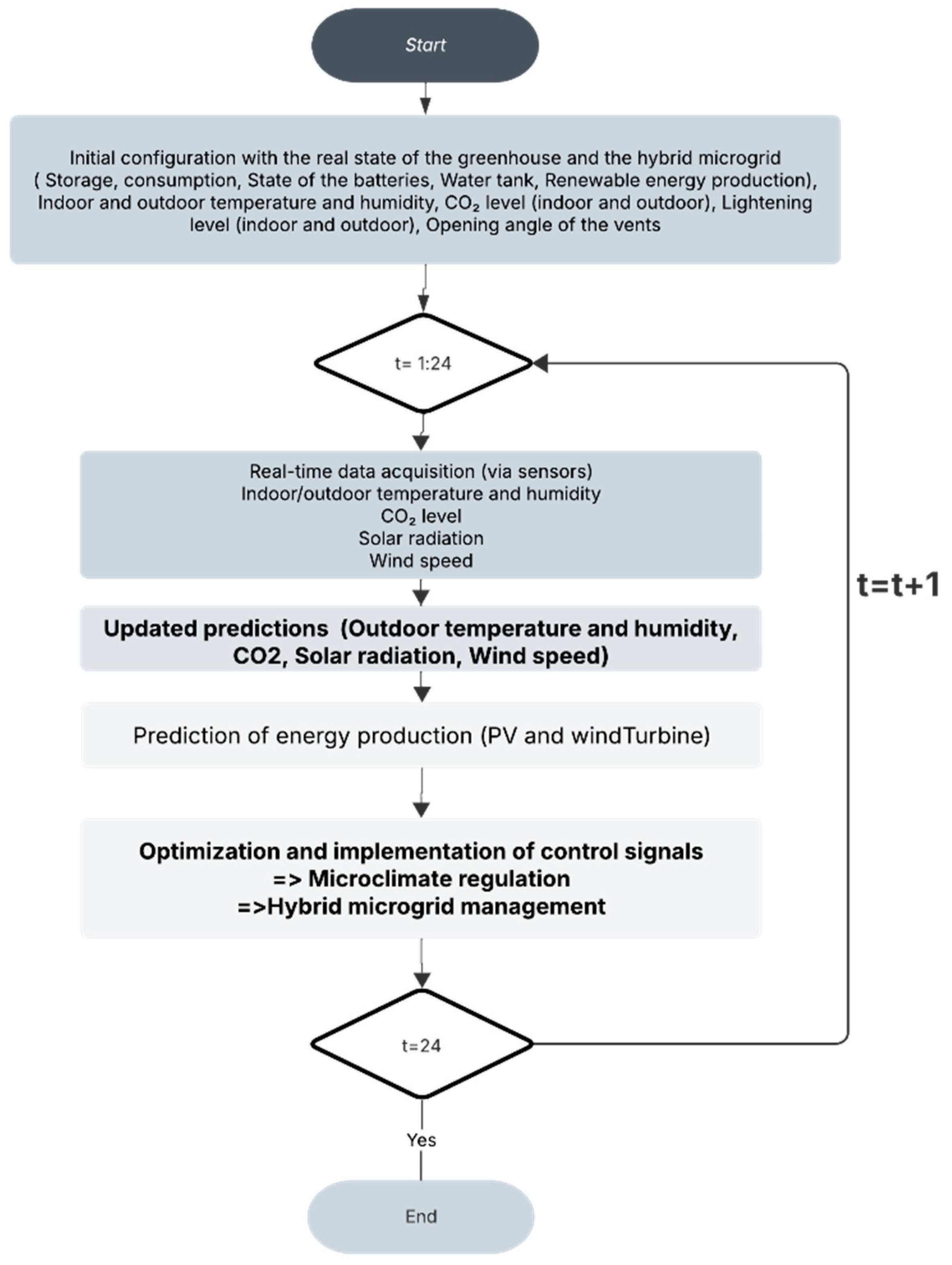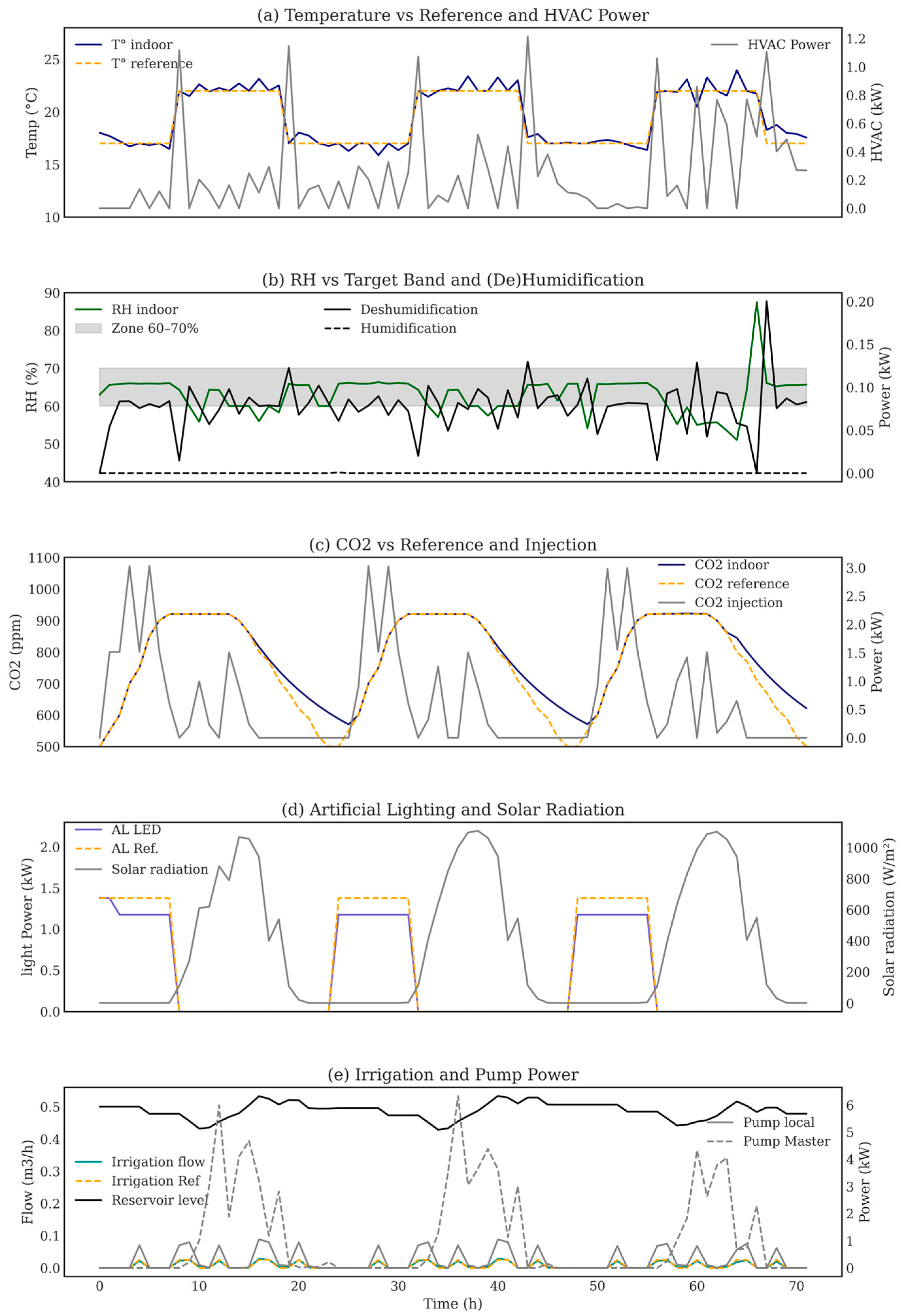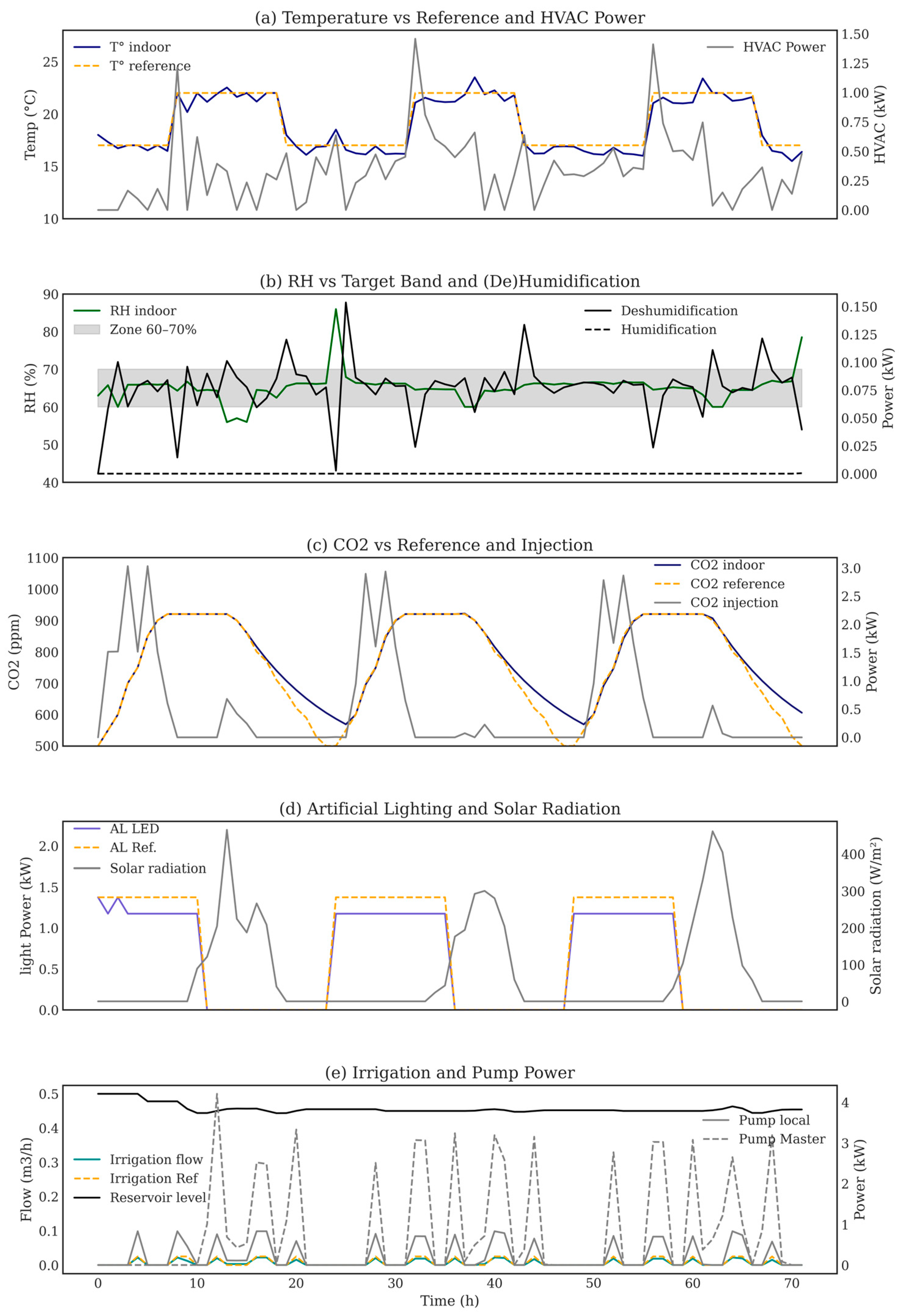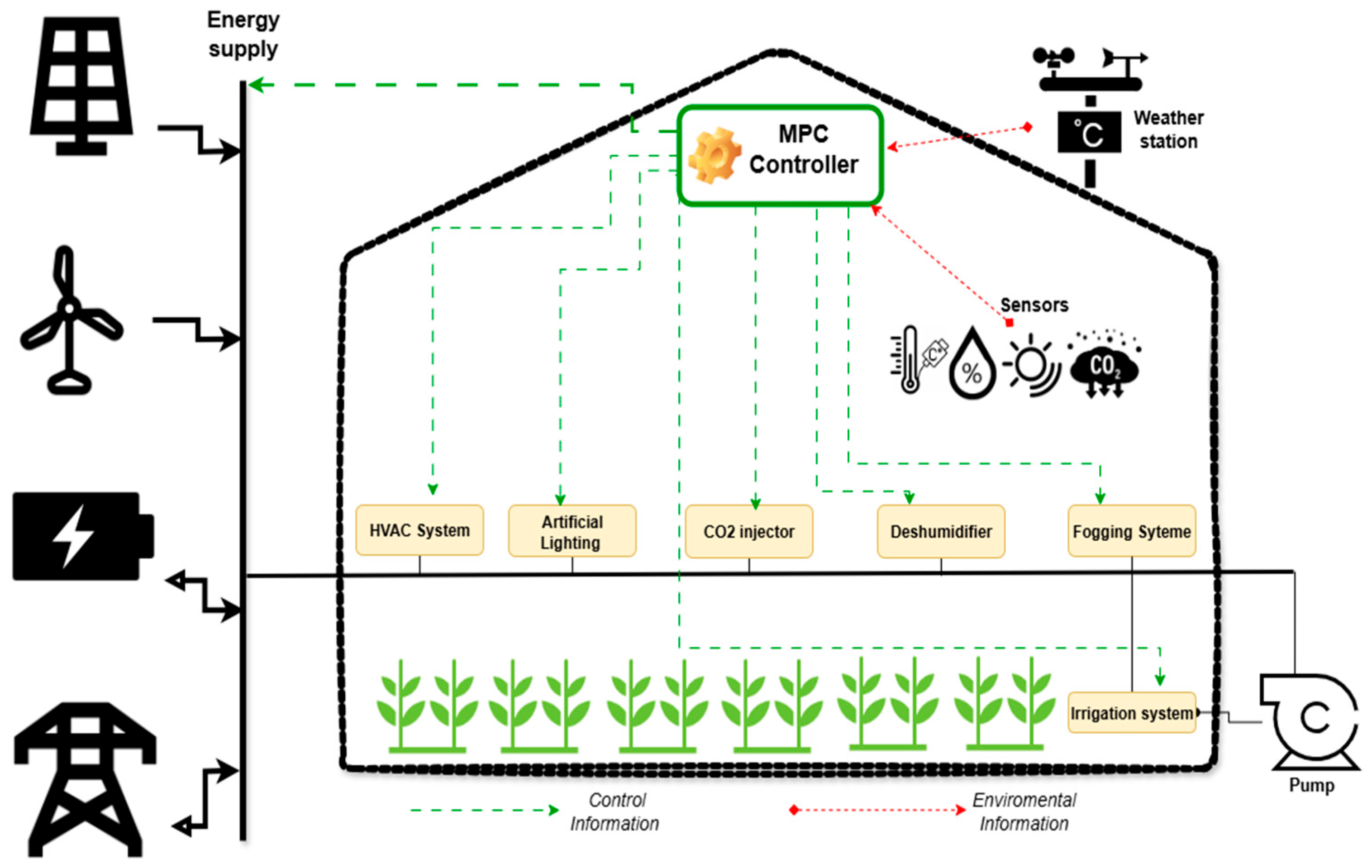 At the core lies an MPC system that jointly regulates climate conditions and optimizes energy flow. By forecasting climatic and energy demands, the MPC enables anticipatory control and efficient energy allocation, ensuring stable and productive operation.
