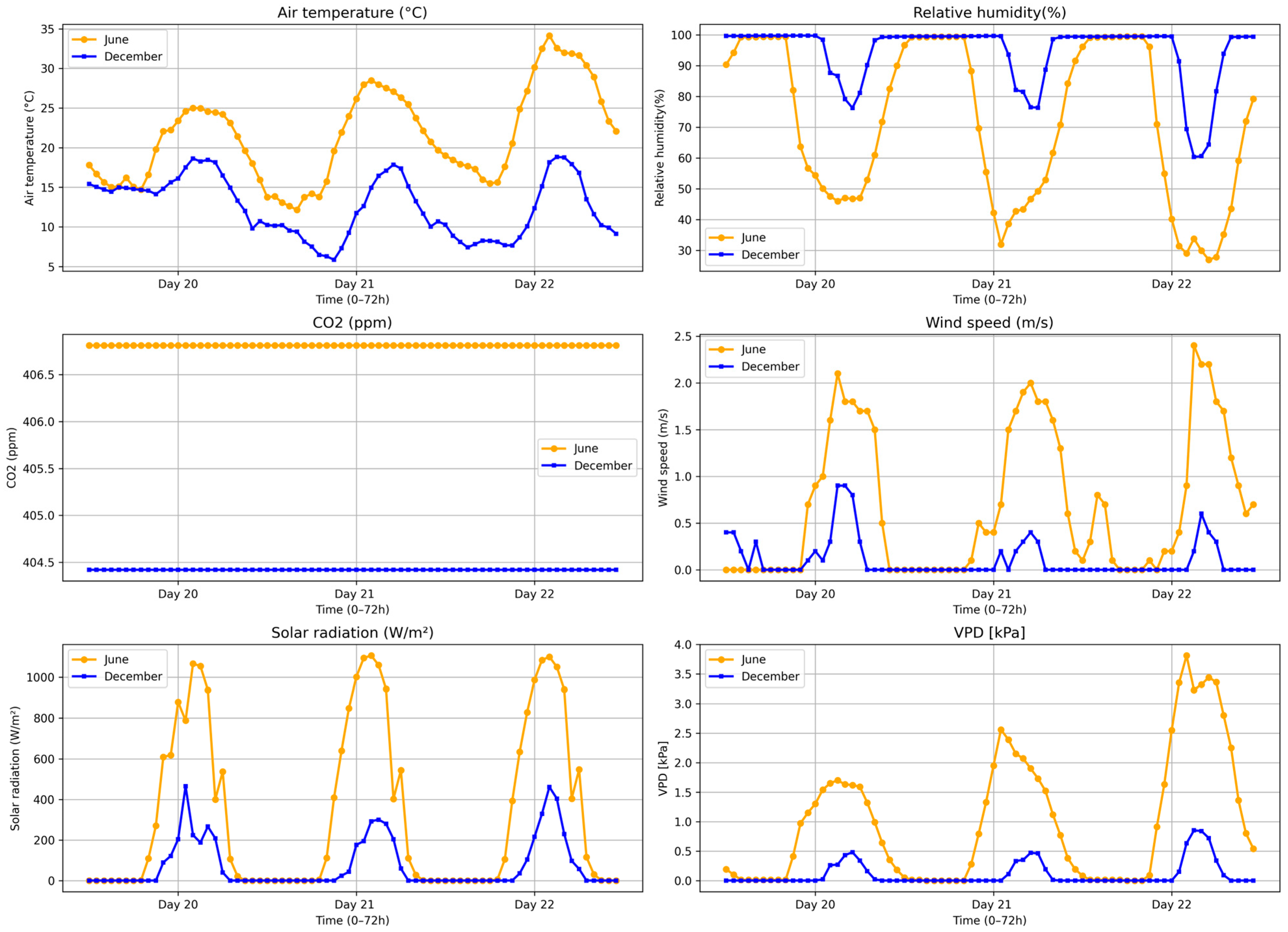 Figure 7. 72 h weather forecast for two seasons (June and December).