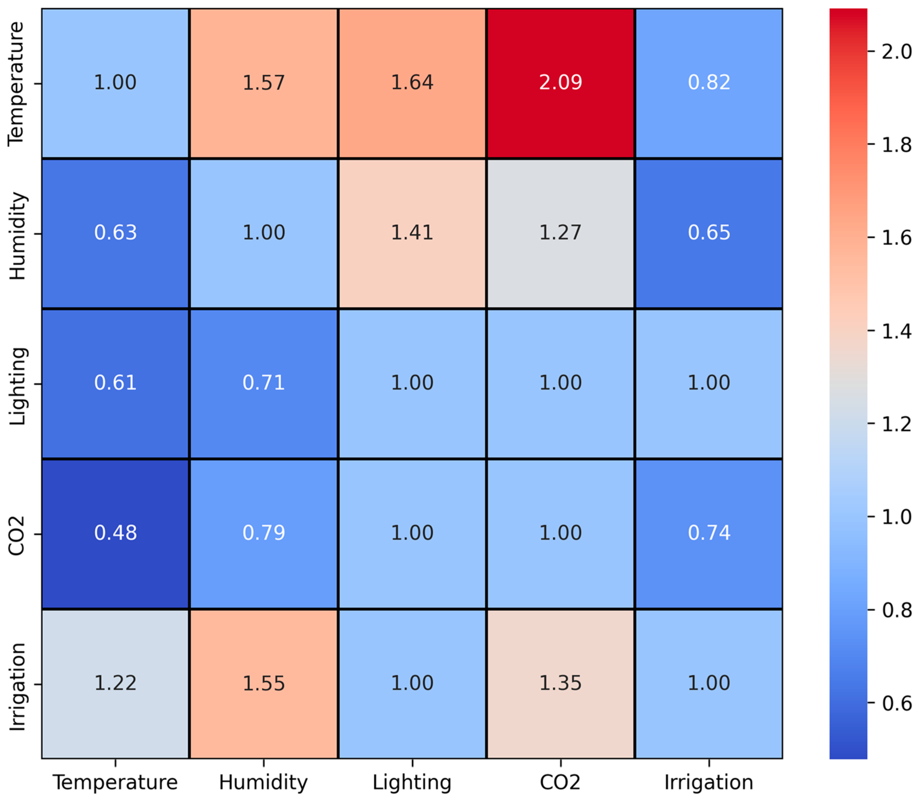 These challenges become particularly critical under constrained resource conditions, such as limited energy availability or water scarcity. Optimal simultaneous control of all parameters becomes impractical under such constraints, necessitating prioritization based on their relative importance to crop productivity and sustainability [12]. Prioritization aids decision-makers in effectively allocating limited resources to manage the most influential parameters optimally, thus maintaining critical environmental conditions even during extreme resource limitations [13].