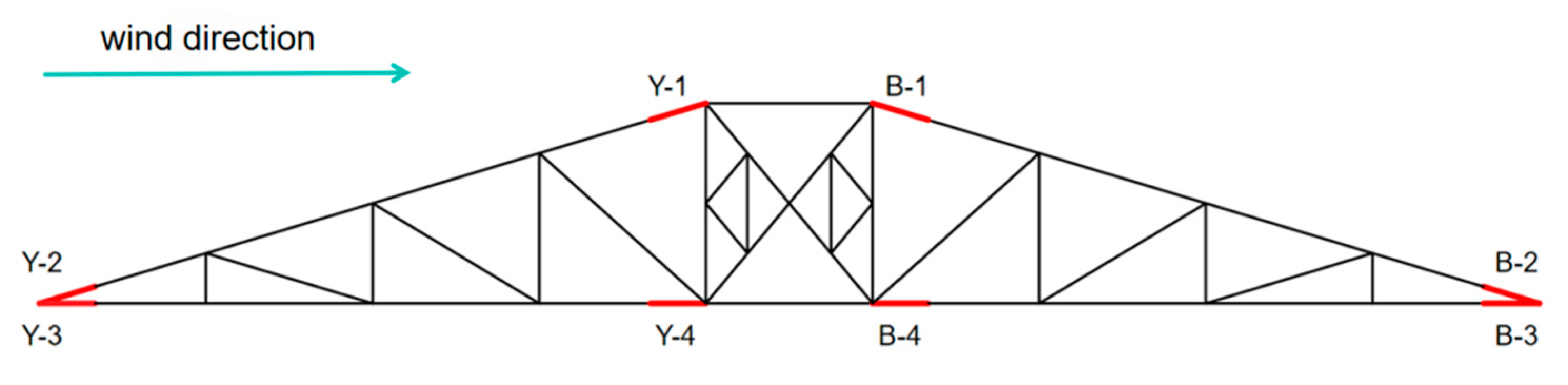 In the above formula, varies, since when the wind speed exceeds 20 m/s, the coefficients in the function between the crossarm strain and conductor displacement under this type of operating condition are lower than those under the 5~20 m/s operating condition, which leads to a decrease in the overall fitting accuracy. To more accurately reflect the change in coefficients, a piecewise function is set for this expression.