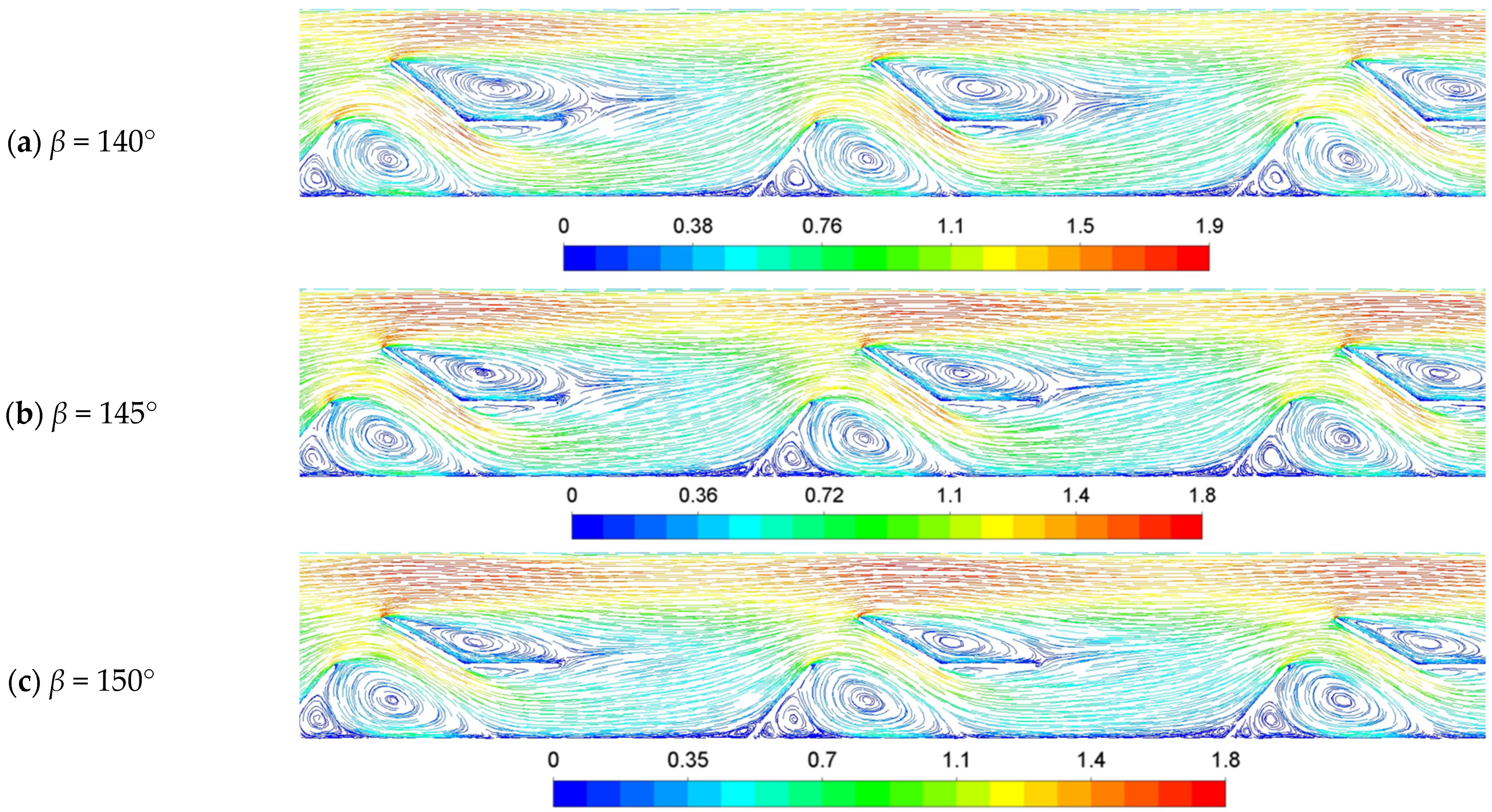 3.3.2. Effect of β on Hydraulic Performance