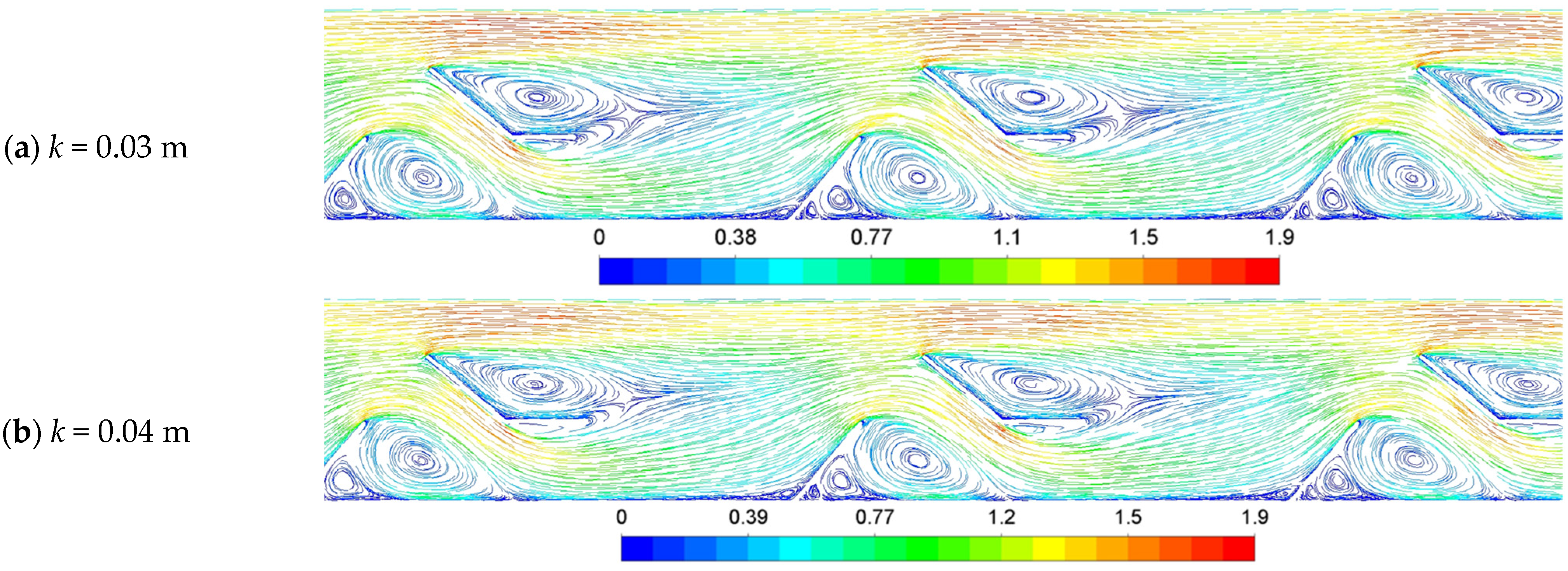 3.4.2. Effect of k on Hydraulic Performance