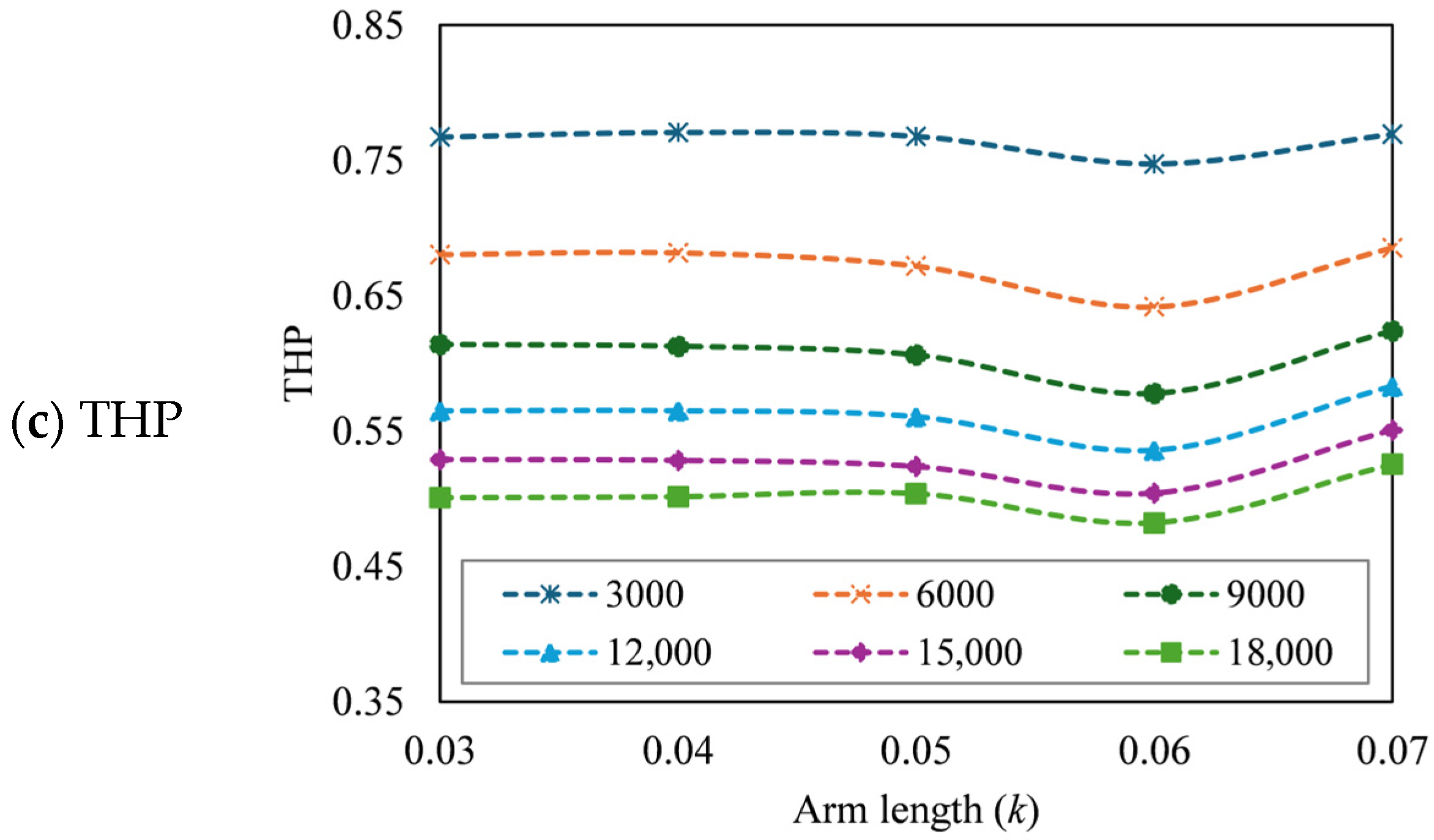 3.4. Effect of Arm Length (k)