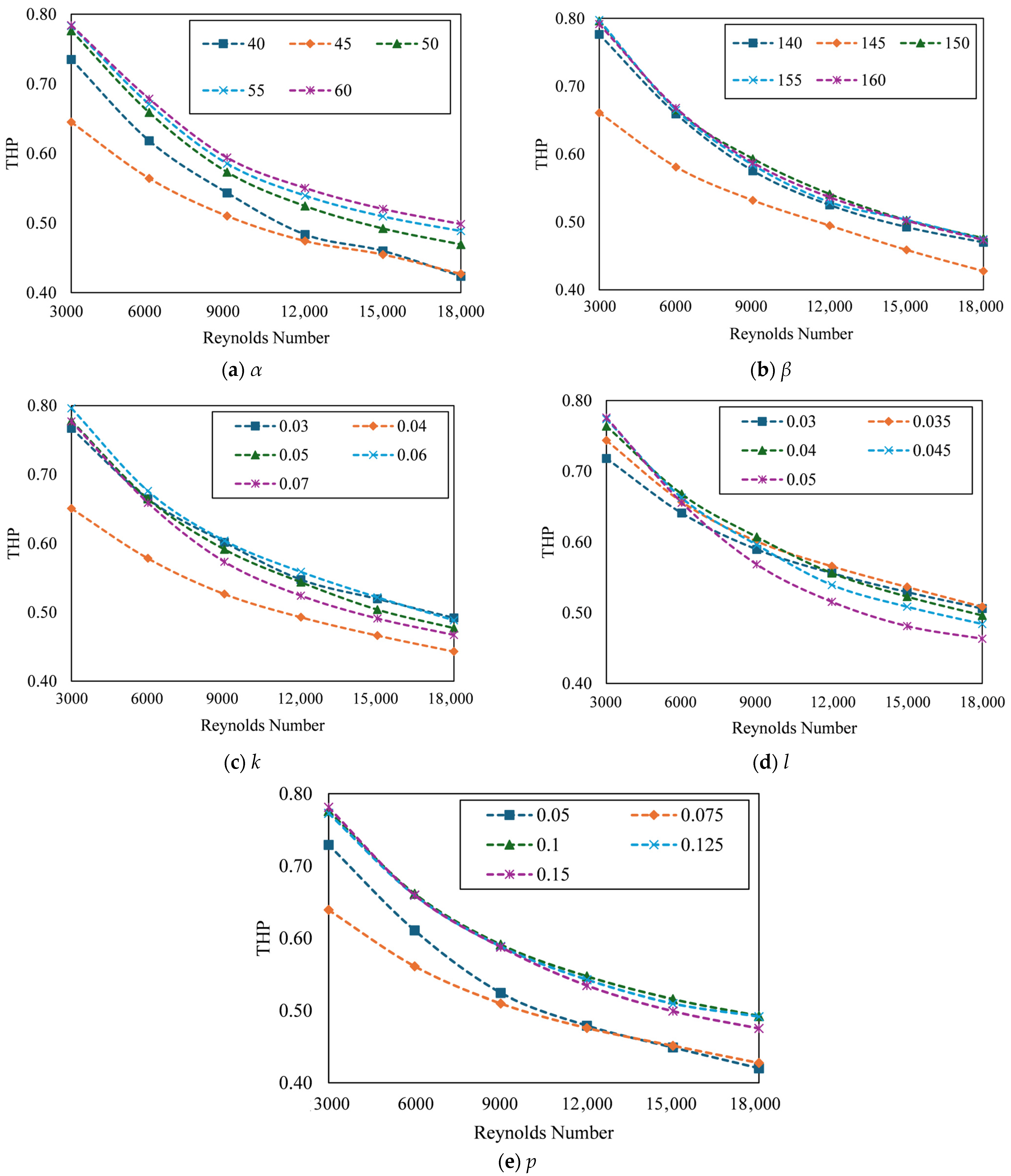 3.7.3. Effect of Reynolds Number on THP