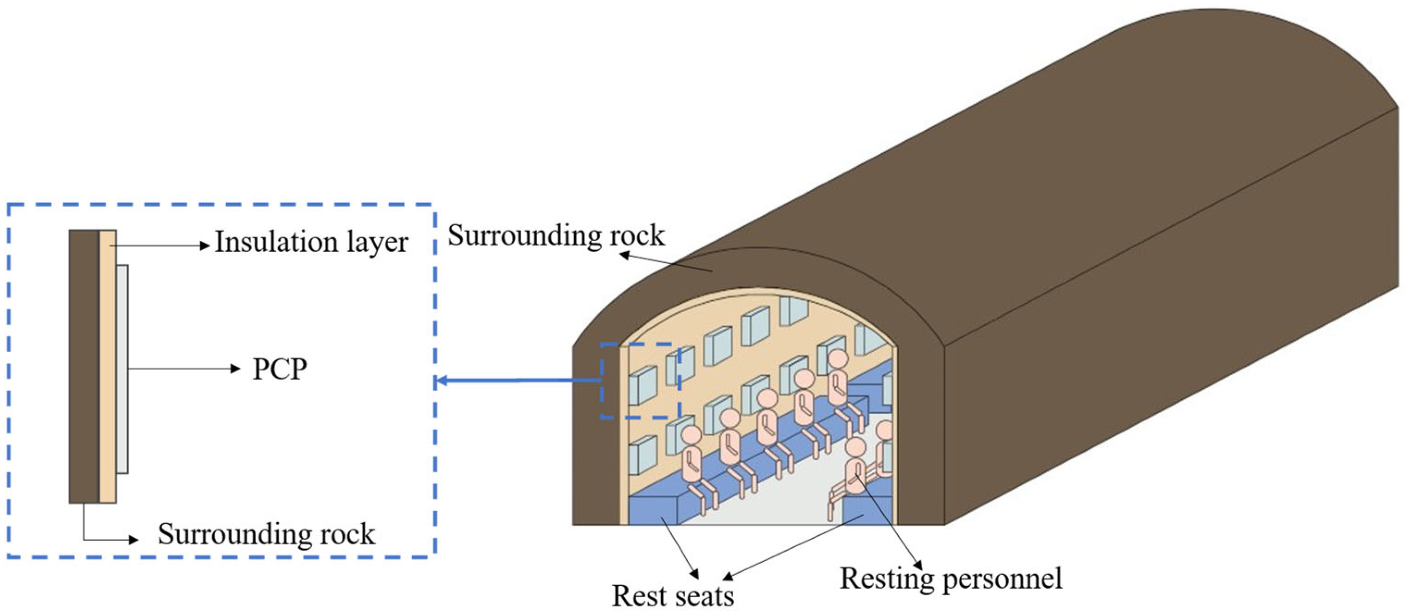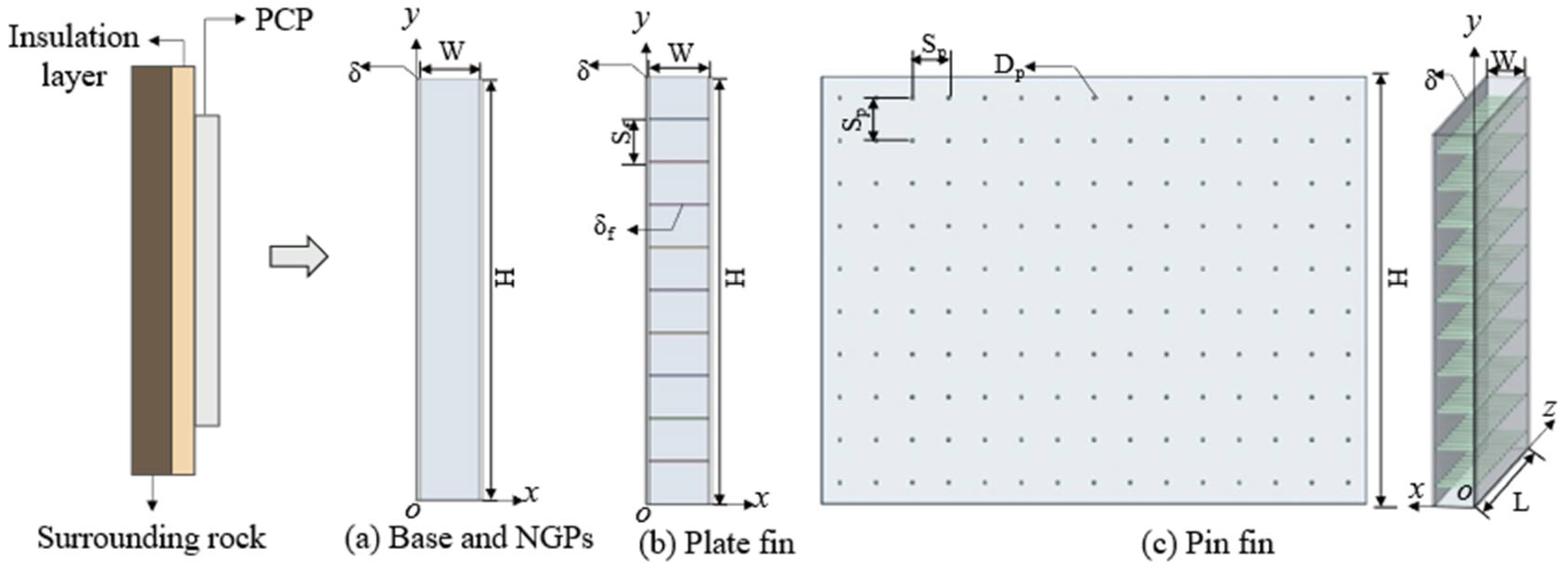 - To further enhance the application effectiveness of PCP systems in underground refuge chambers, additional research is required. It is necessary to conduct medium-scale experimental validation using multiple PCP modules and subsequently perform field testing under actual chamber conditions. Secondly, long-term cyclic stability studies should be carried out on NGP-PCM composite materials. Furthermore, key parameters including NGP mass fraction as well as fin height, thickness, and spacing need optimization to achieve the optimal balance between performance and cost.