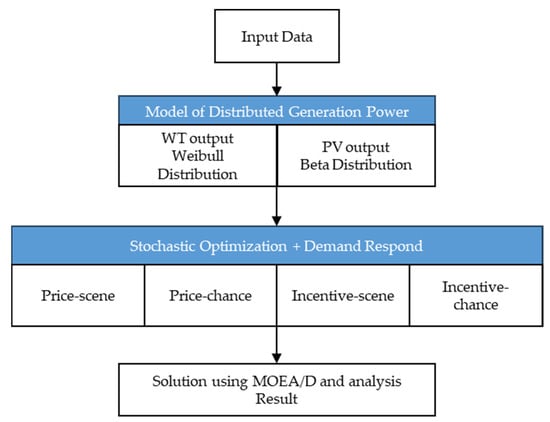 The overall research idea and process of the multi-objective optimization dispatching of the active distribution network is presented in Figure 1, covering the main links such as data input, random scene modeling, and optimization solution.