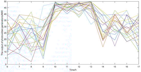 In the scene method, the wind and photovoltaic scenes before and after reduction are given in Figure 4, Figure 5, Figure 6 and Figure 7.