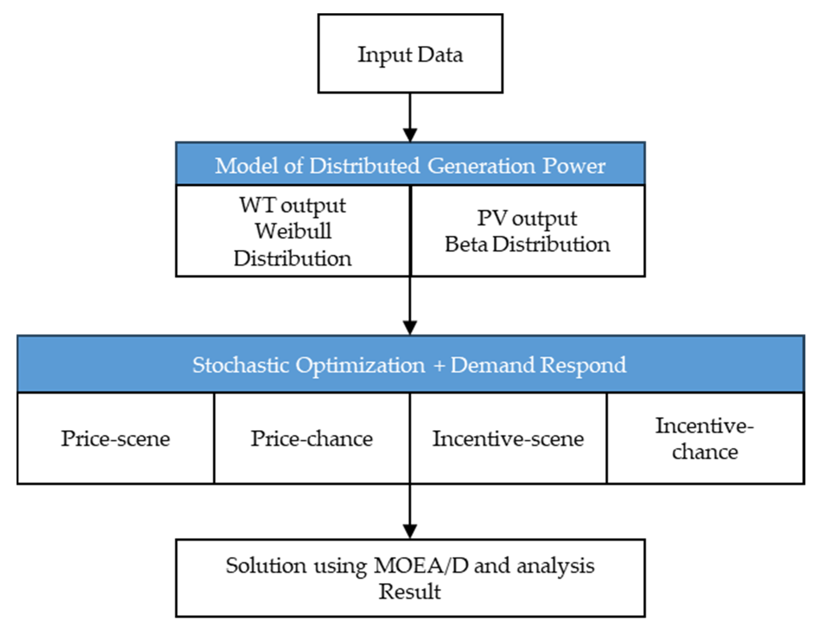 The active distribution network (ADN) is a multi-energy coupling system composed of distributed renewable energy, energy storage devices, and flexible loads. The goal of its optimized operation is to achieve a comprehensive coordination of economy, reliability, and safety under the condition of the uncertainty of renewable energy output. To this end, it is necessary to establish an optimized scheduling framework that simultaneously considers the source–load interaction and the characteristics of demand response. The core ideas of the active distribution network optimization operation studied in this paper can be summarized into the following three aspects as below.