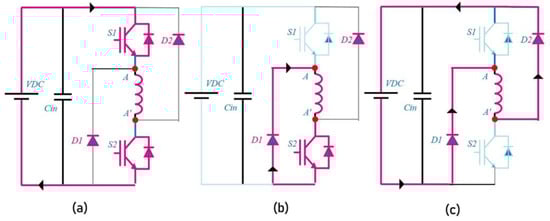 Asymmetric bridge converter modes of operation (a) Magnetization; (b) Free wheeling; (c) Demagnetization.