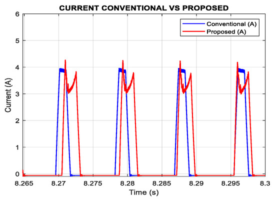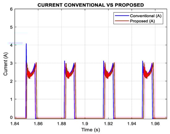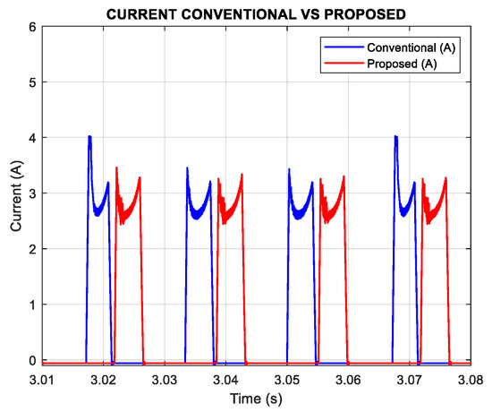 At low and medium speeds, the proposed controller delivers a substantially smoother current profile, minimizing the transient oscillations present in the conventional approach.