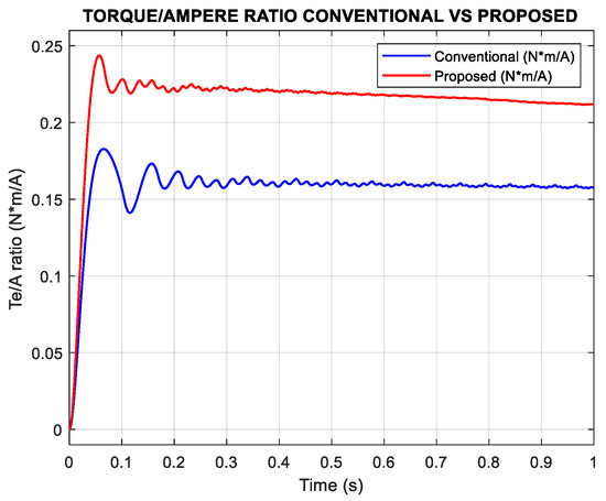 With a superior torque current ratio across all tested conditions, the proposed method achieves a higher torque-per-ampere ratio, indicating more efficient use of available current.