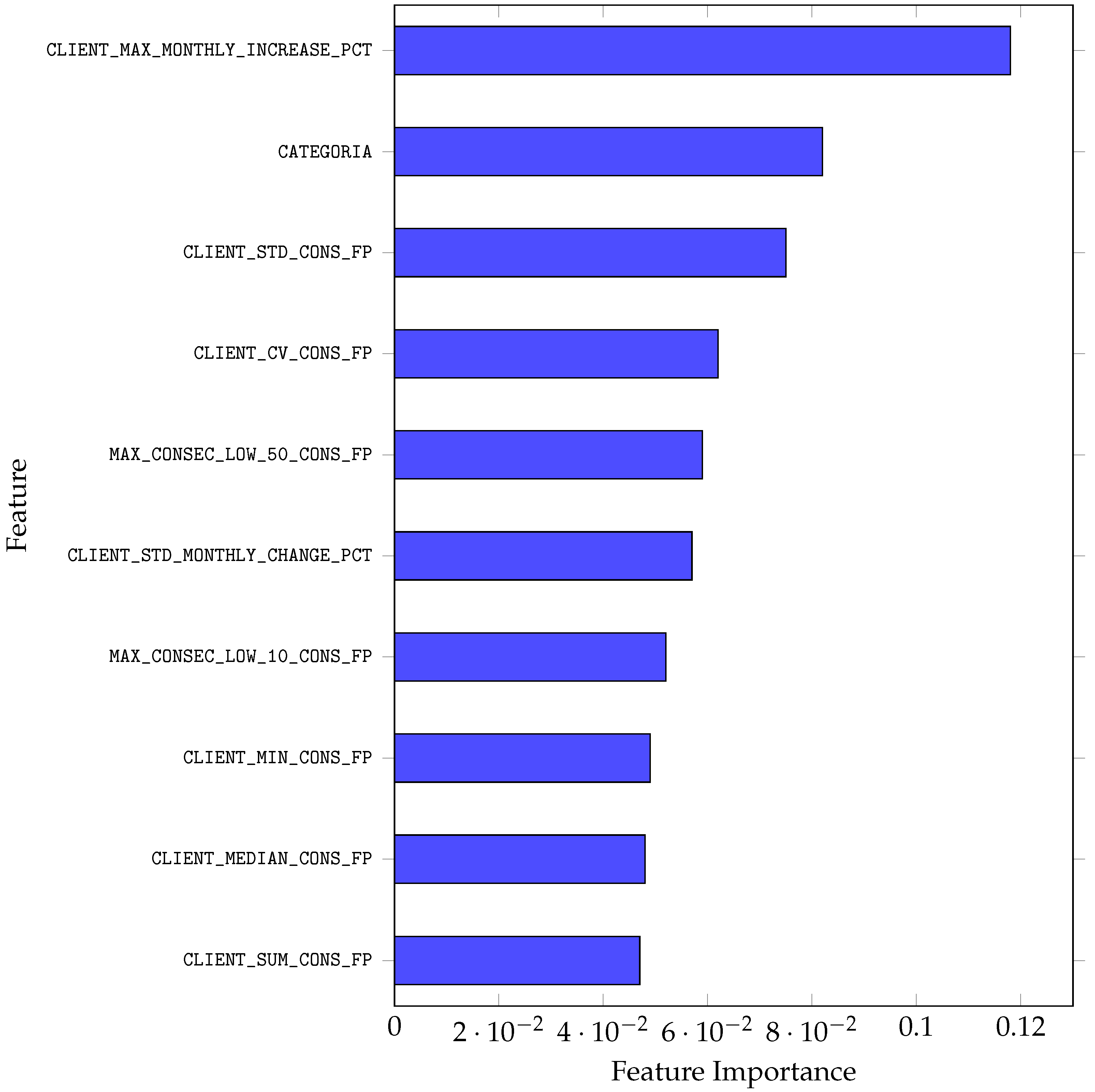 - Statistics of Monthly Consumption Variation per Customer: Features such as CLIENT_AVG_ABS_MONTHLY_CHANGE_PCT, CLIENT_STD_MONTHLY_CHANGE_PCT, CLIENT_MAX_MONTHLY_INCREASE_PCT, and CLIENT_MIN_MONTHLY_DECREASE_PCT quantify the customer’s consumption stability and fluctuation intensity.