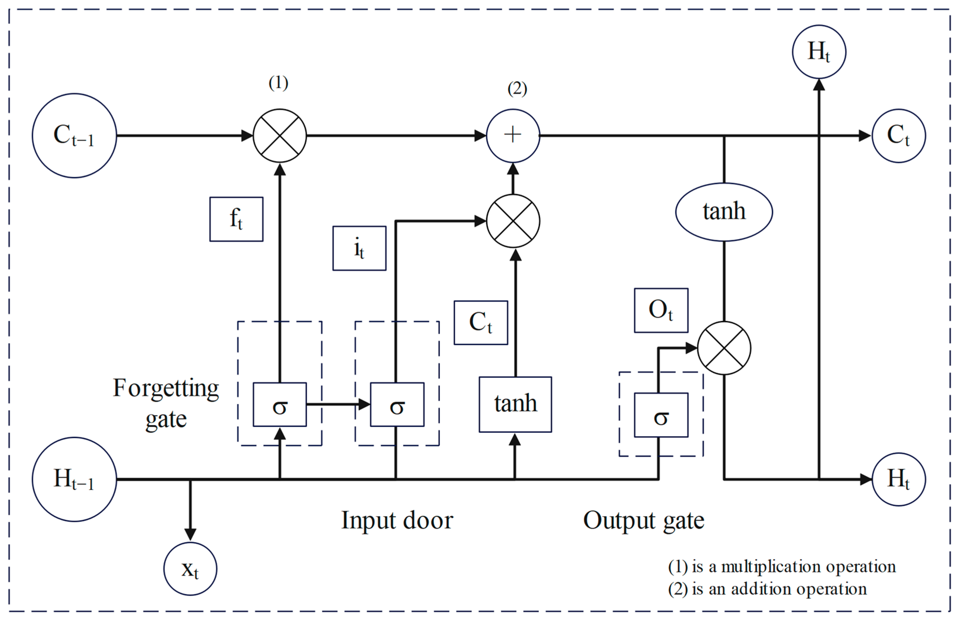 The LSTM model consists of multiple LSTM units connected chronologically, short-term memory is transmitted through the hidden layer of neighboring units, and long-term memory is transmitted through the network in chronological order. LSTM ensures information transmission through linear operation. The complete LSTM has three control units, input gate, output gate and forget gate, which are responsible for removing redundancy, updating data and transferring information downward (Cao et al., 2024 [