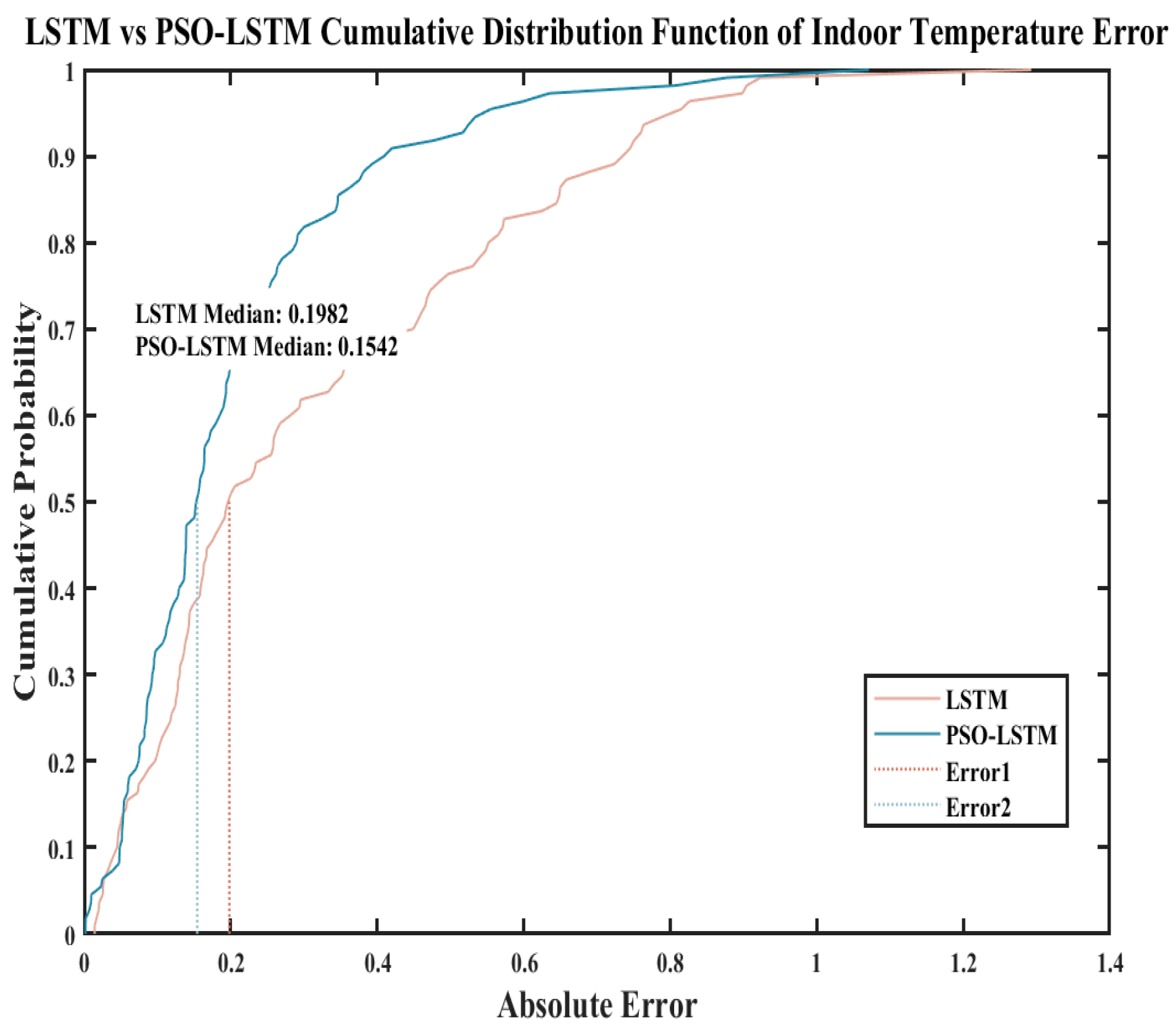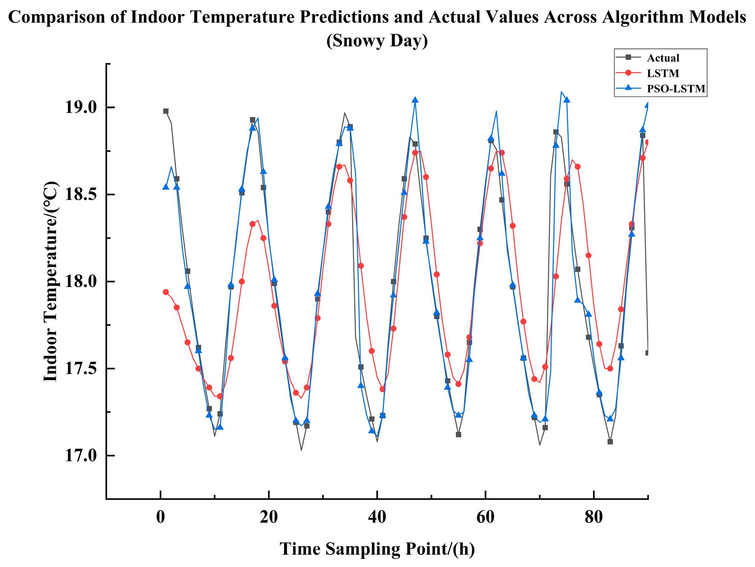 p < 0.05) in the indoor temperature prediction capabilities between the two models, with the PSO-optimized LSTM model demonstrating improved performance. In summary, statistical significance tests conducted on both the LSTM neural network and the PSO-LSTM neural network clearly demonstrate that the PSO-LSTM neural network outperforms the LSTM neural network model.